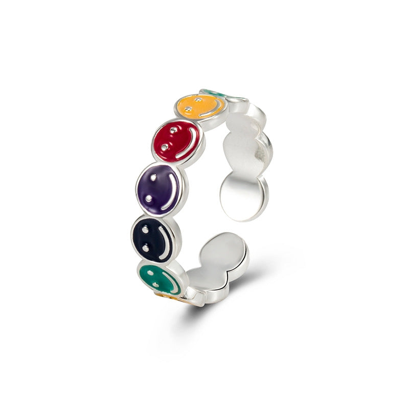 Cute Smiley Face 925 Sterling Silver Enamel Open Ring