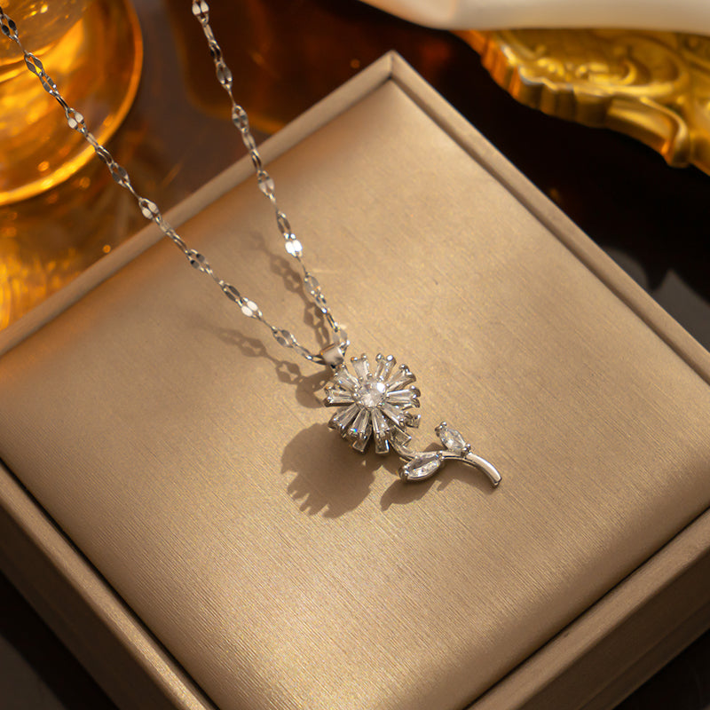 Sunflower Stainless Steel 18K Gold Plated Pendant Necklace with Inlay Gemstones