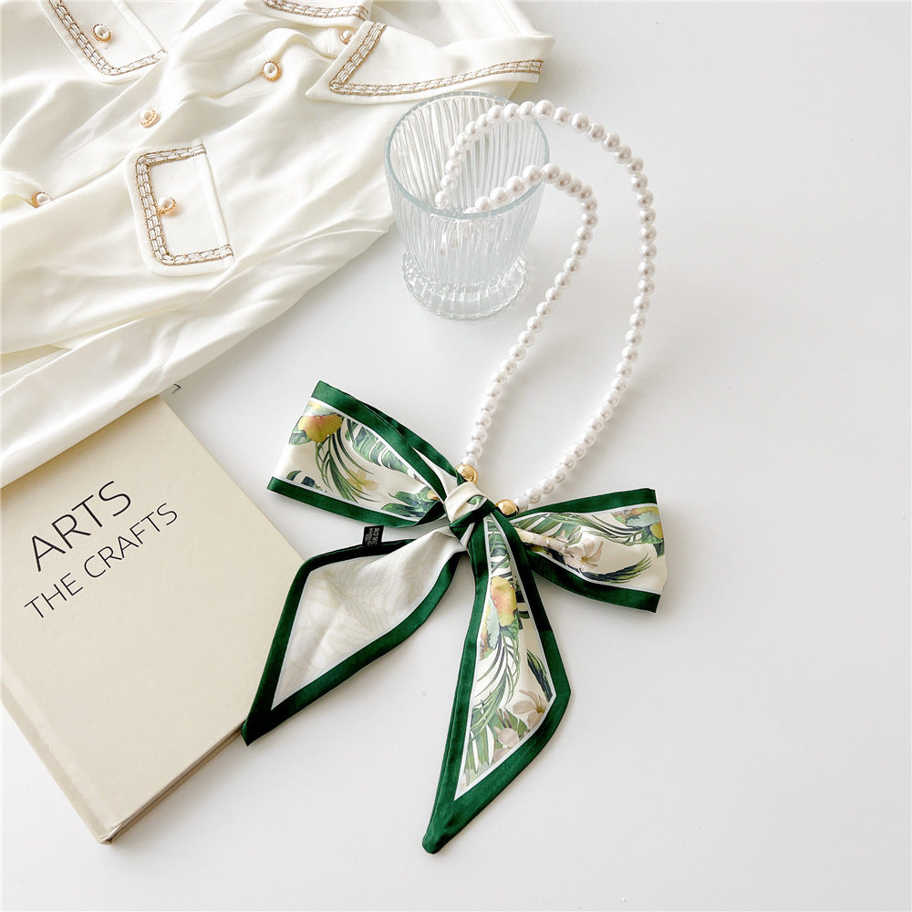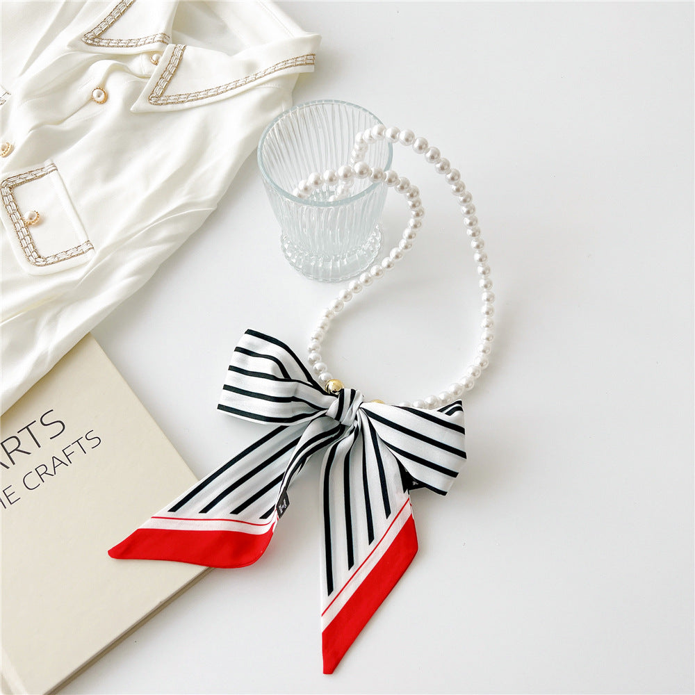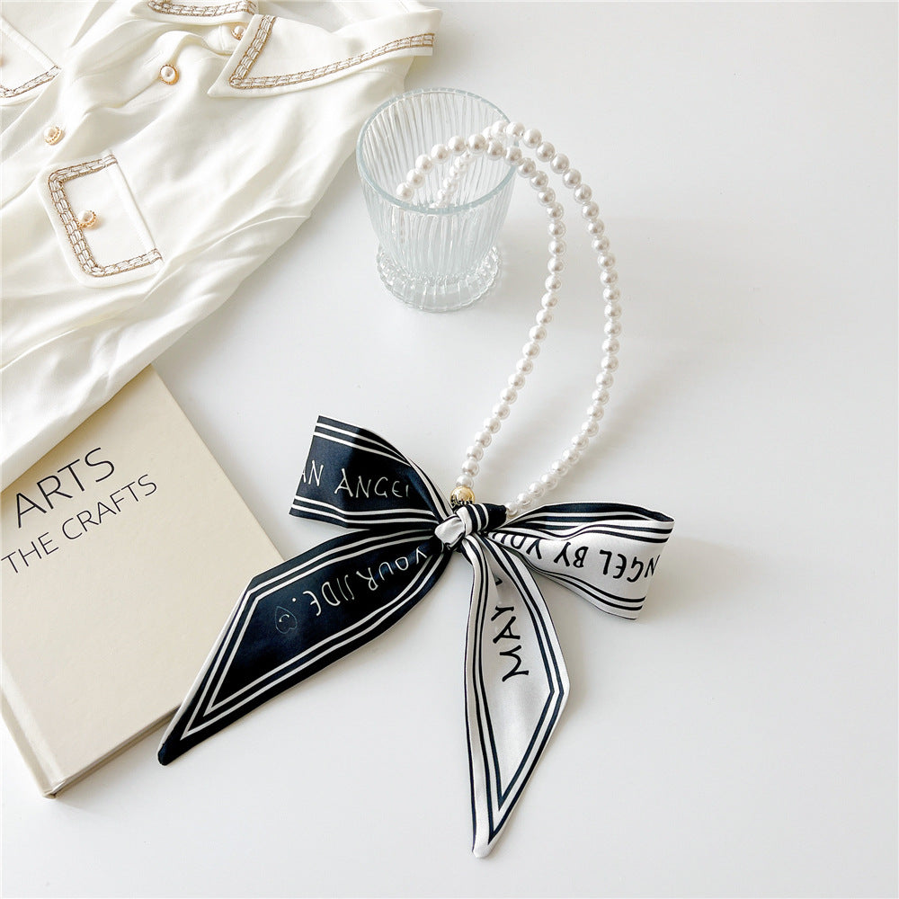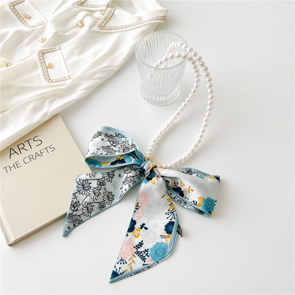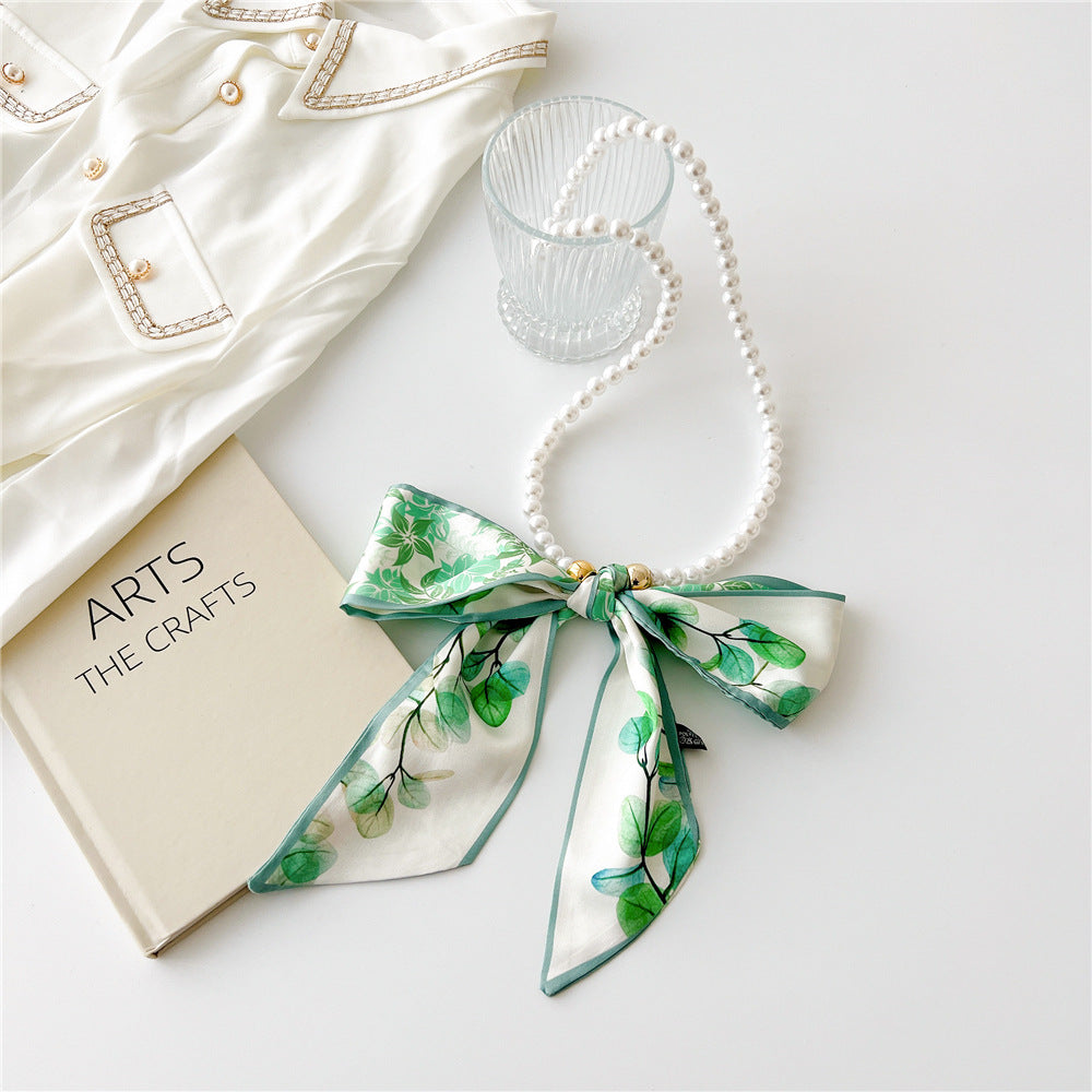 Vintage Pearl Bow Knot Scarf Necklace for Women