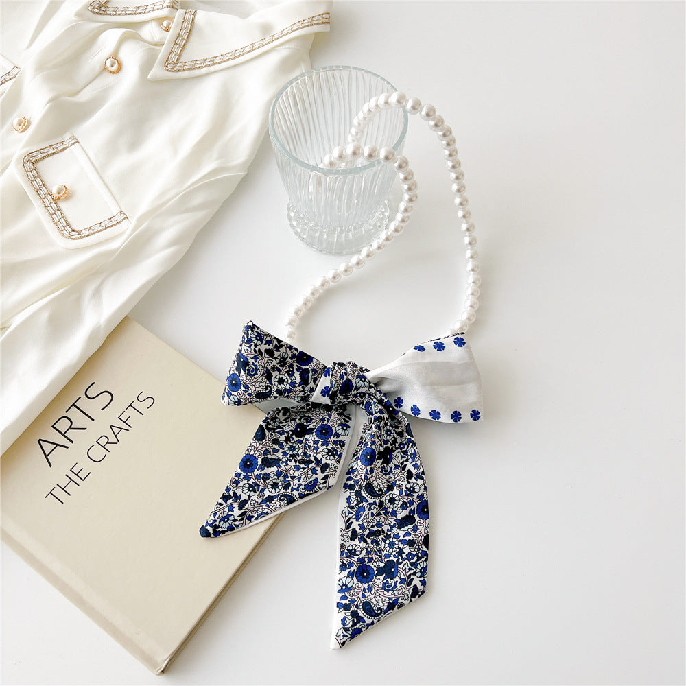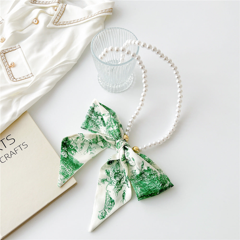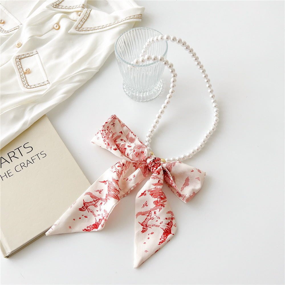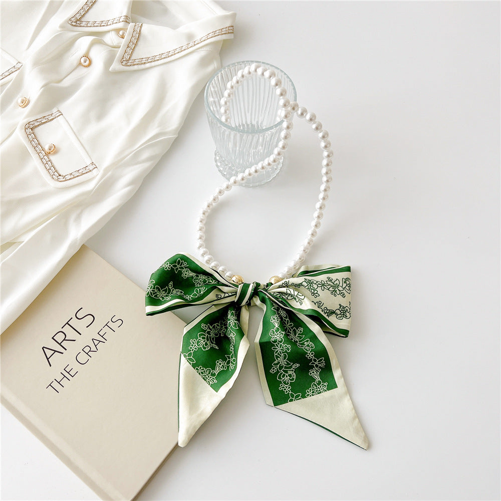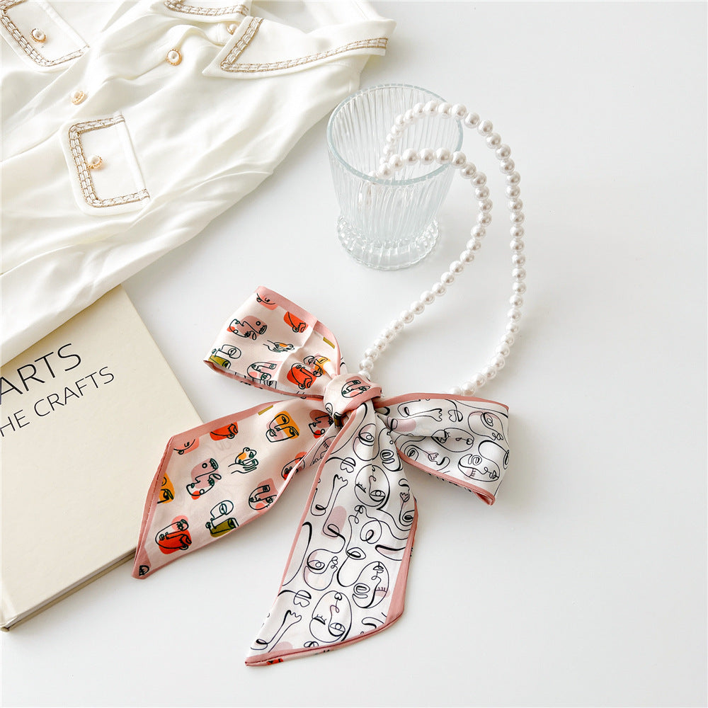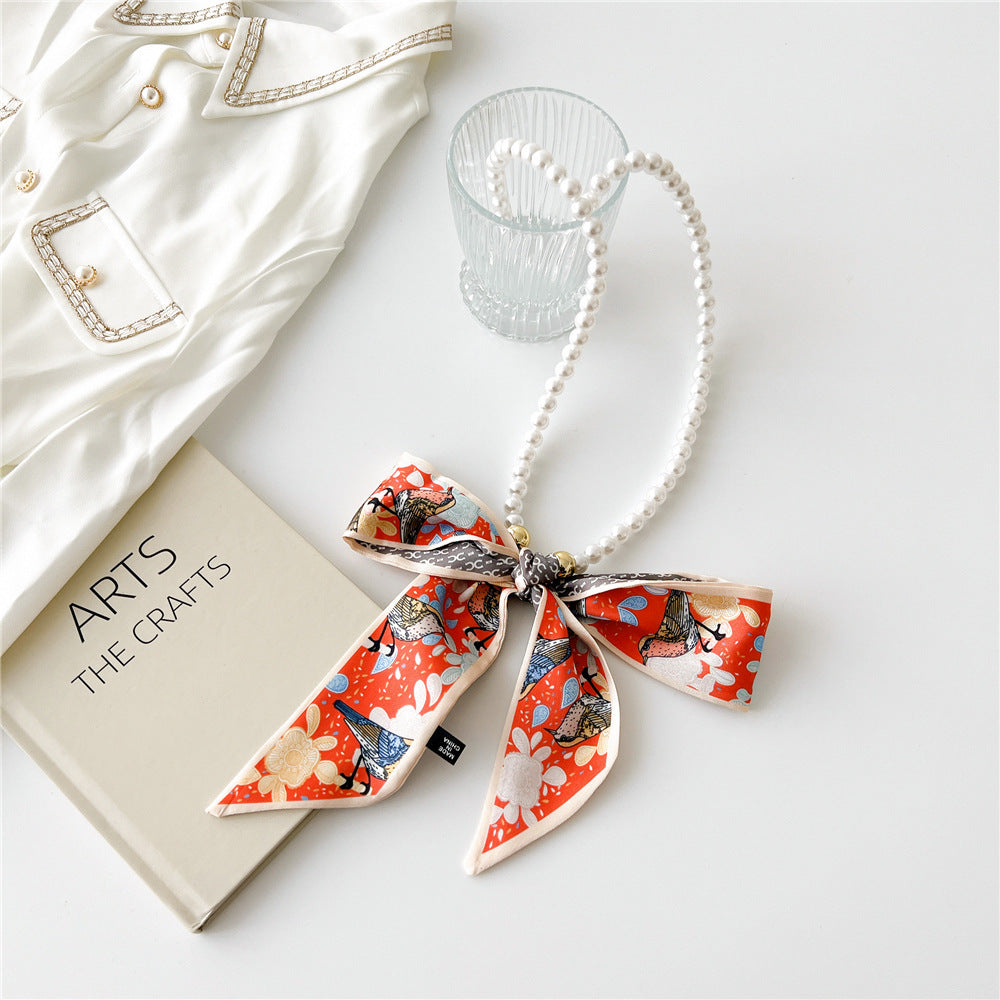 Vintage Pearl Bow Knot Scarf Necklace for Women