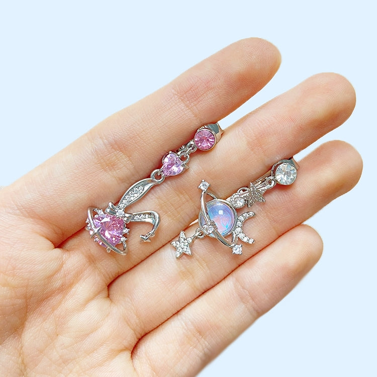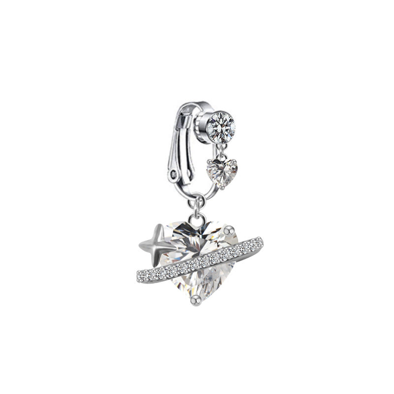 Cute Bridal Star and Heart Shape 14k Gold Plated Belly Ring with Crystal and Zircon