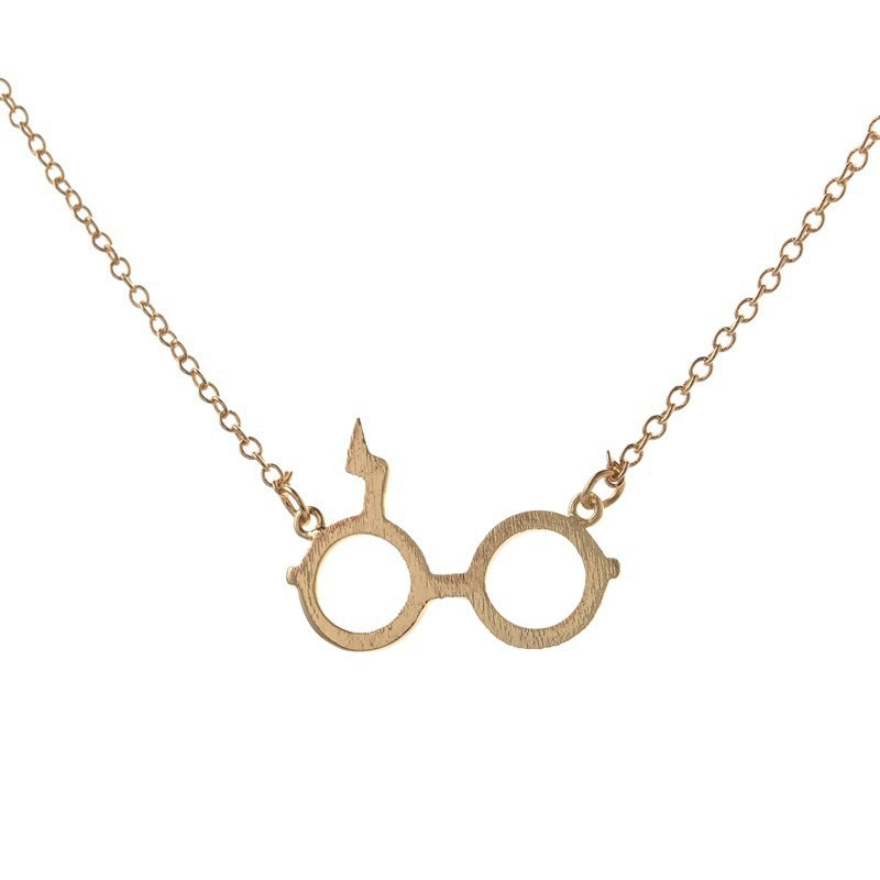 Deathly Hallows Glasses Pendant Necklace in Gold and Silver Lightning Bolt Design