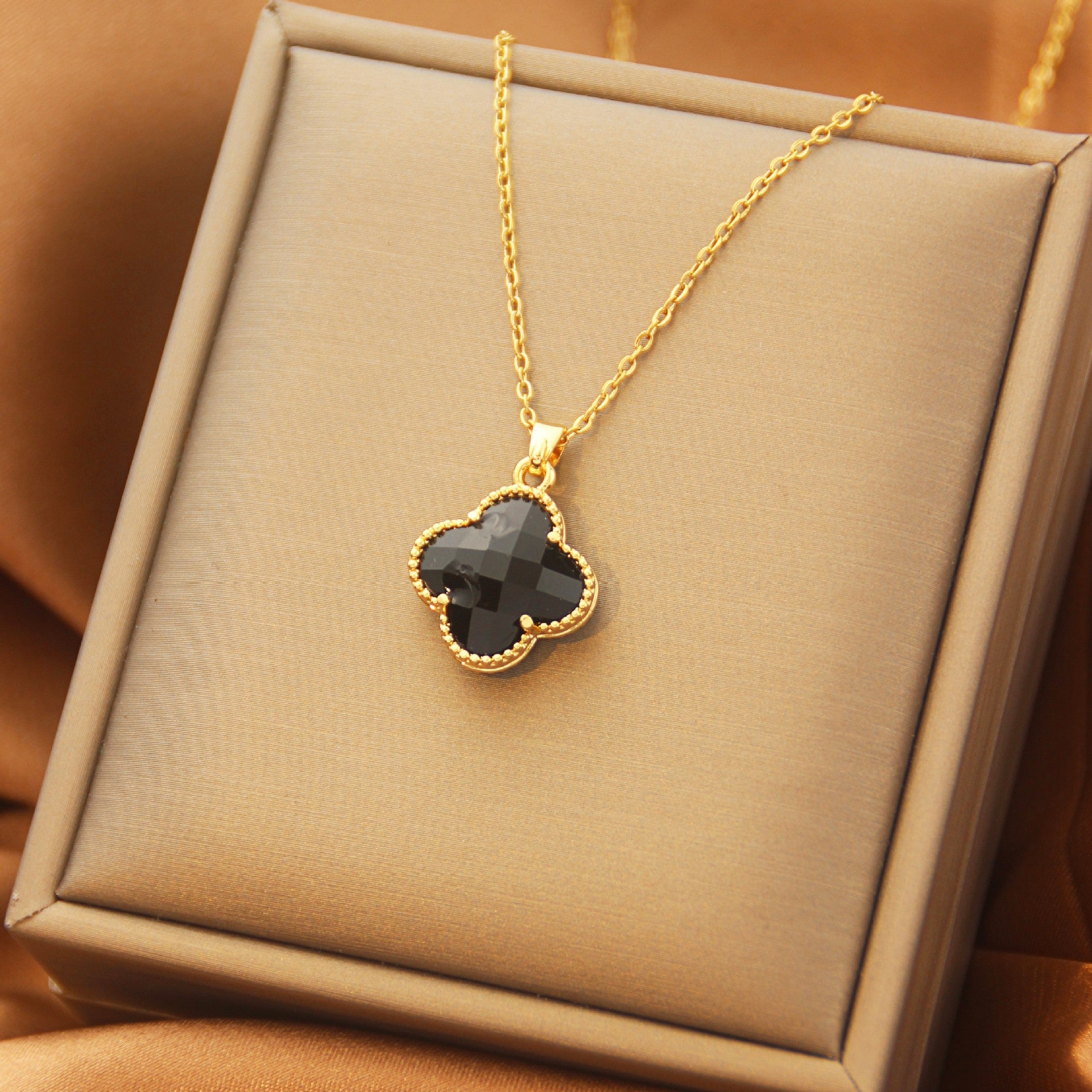 QZ05015【Black Zirconia Clover】
