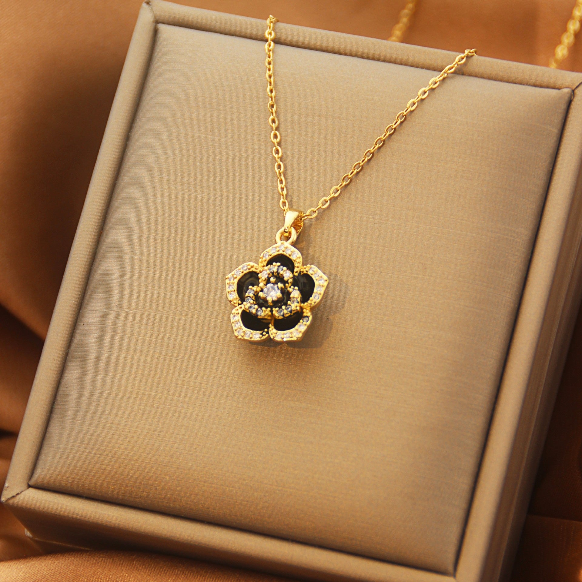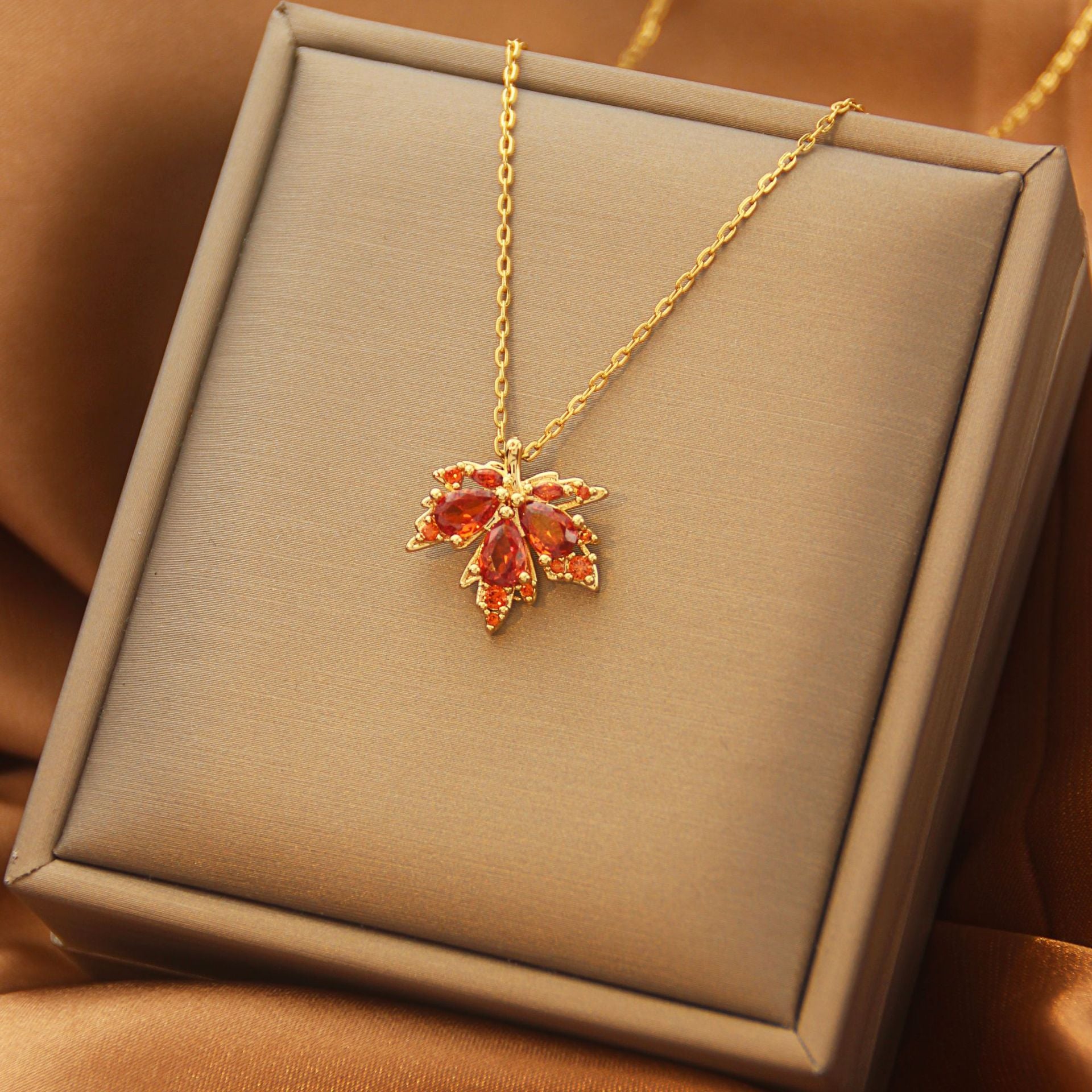 Elegant Maple Leaf Heart Titanium Steel Zircon Cross Pendant Necklace
