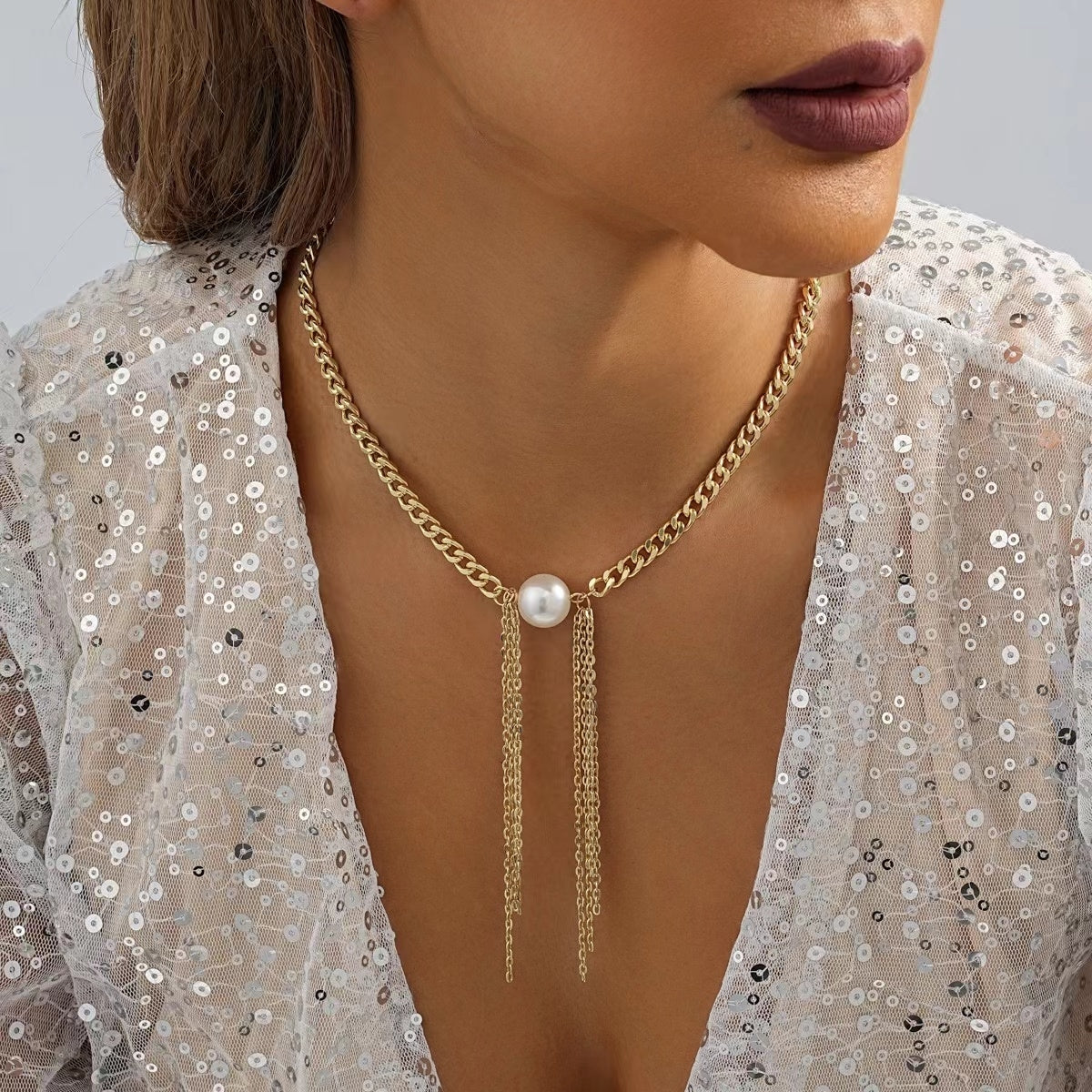 Elegant Artistic Tassel Alloy Pendant Necklace with Faux Pearl Accents