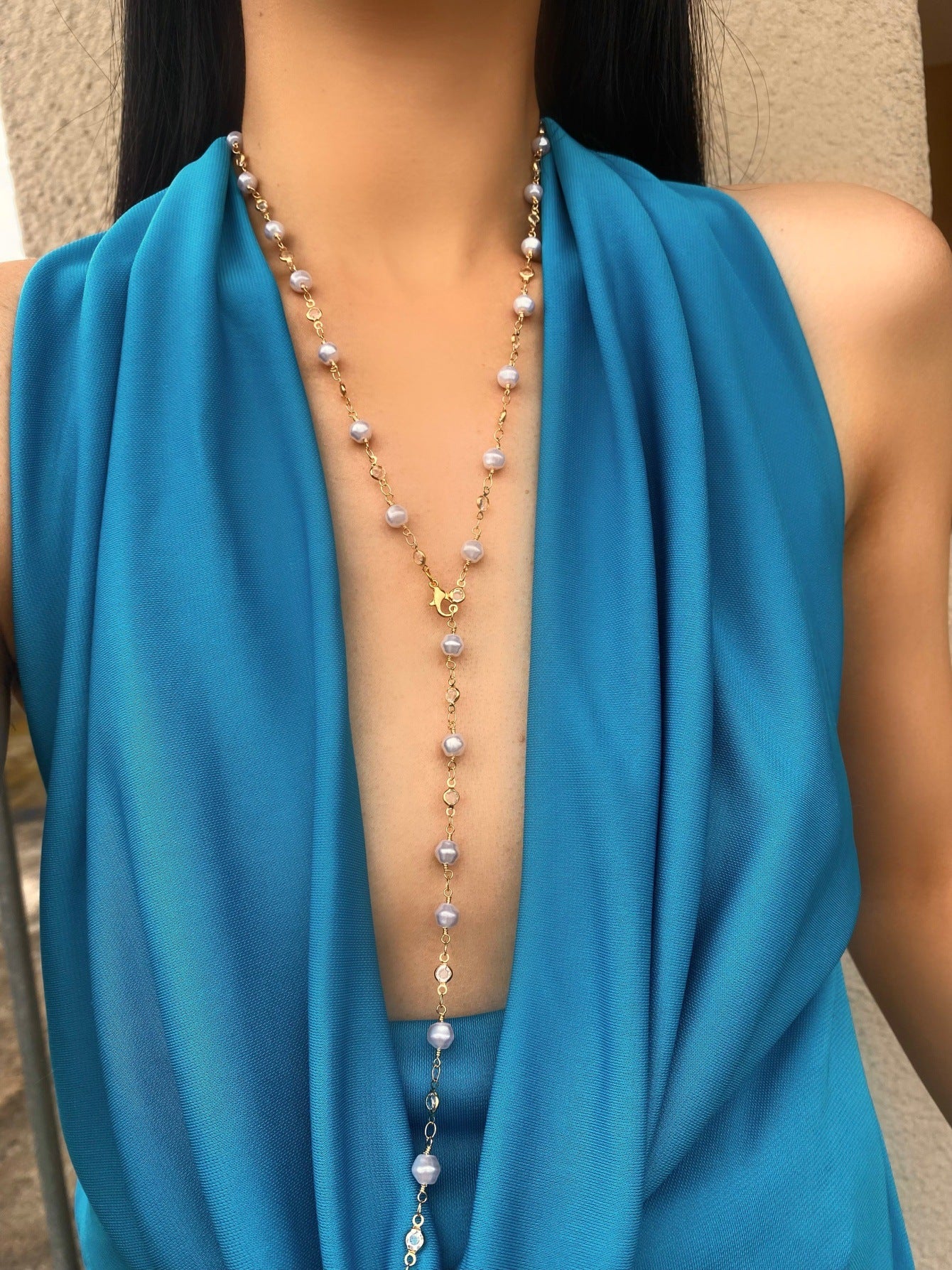 Elegant Beach Tassel Long Rhinestone Necklace in Gold/Silver