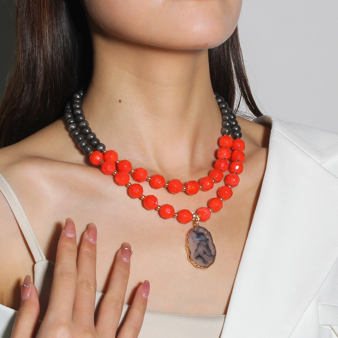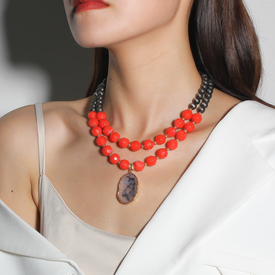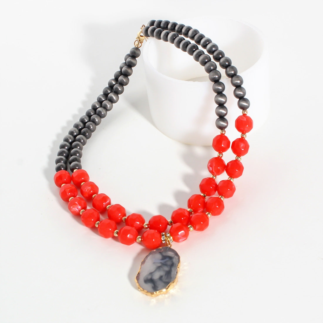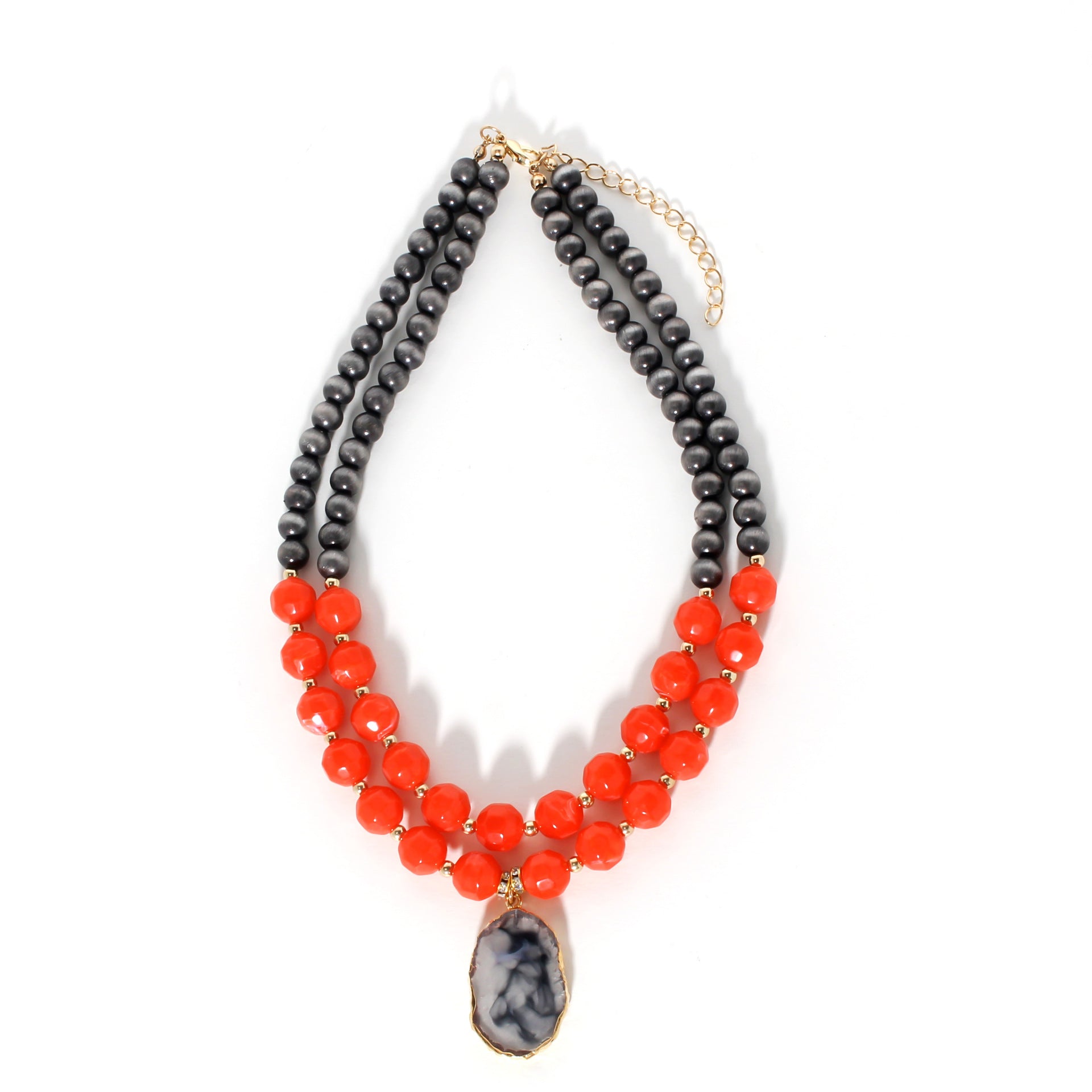 Elegant Geometric Acrylic Beaded Layered Pendant Necklace