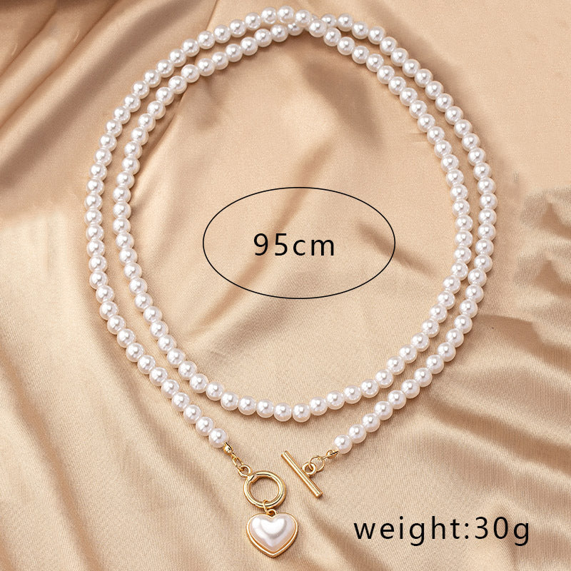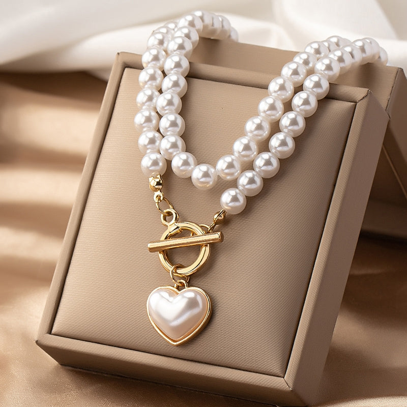 Elegant Vintage Heart Shape Pearl Pendant Necklace for Women