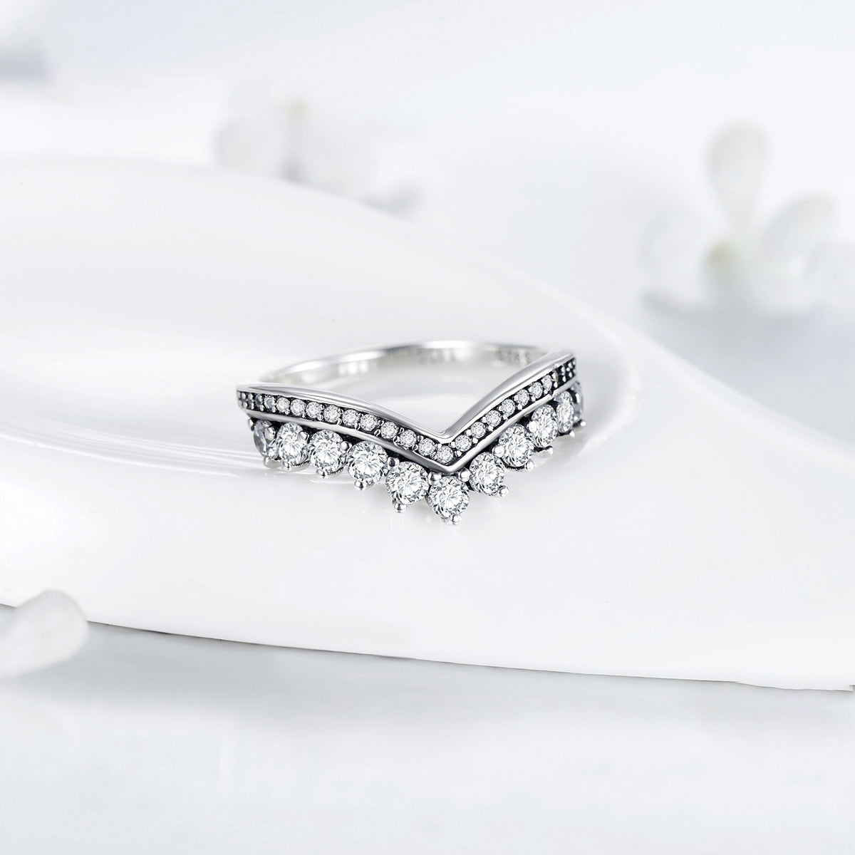 Elegant Geometric Arrow Zircon Inlay Sterling Silver Ring