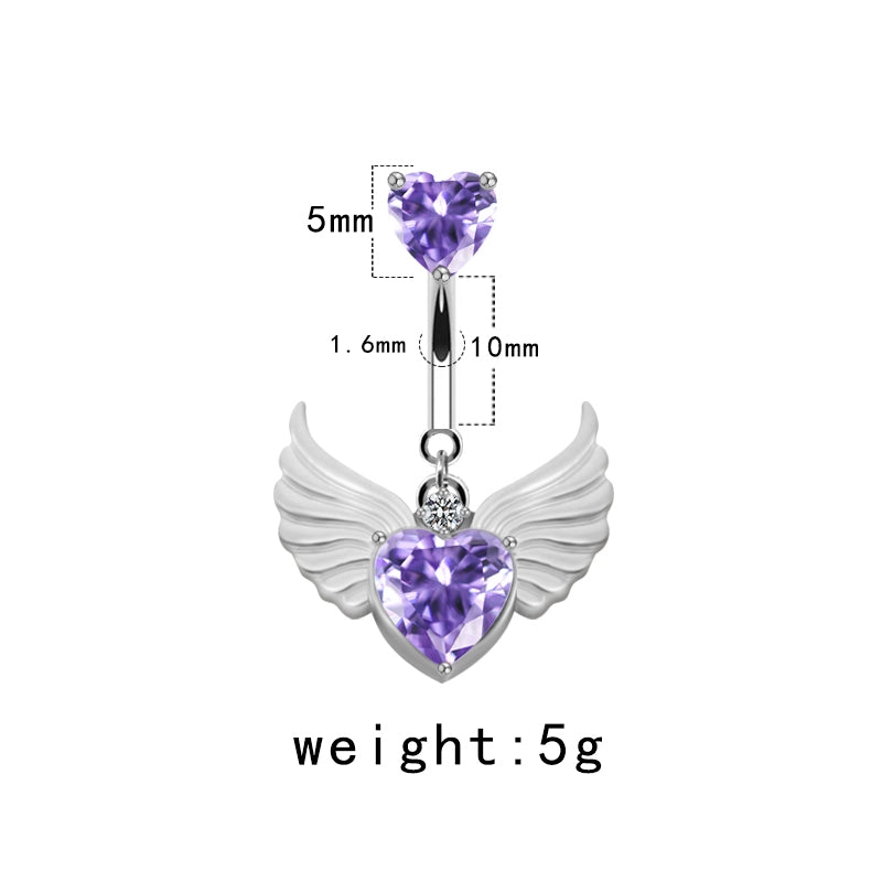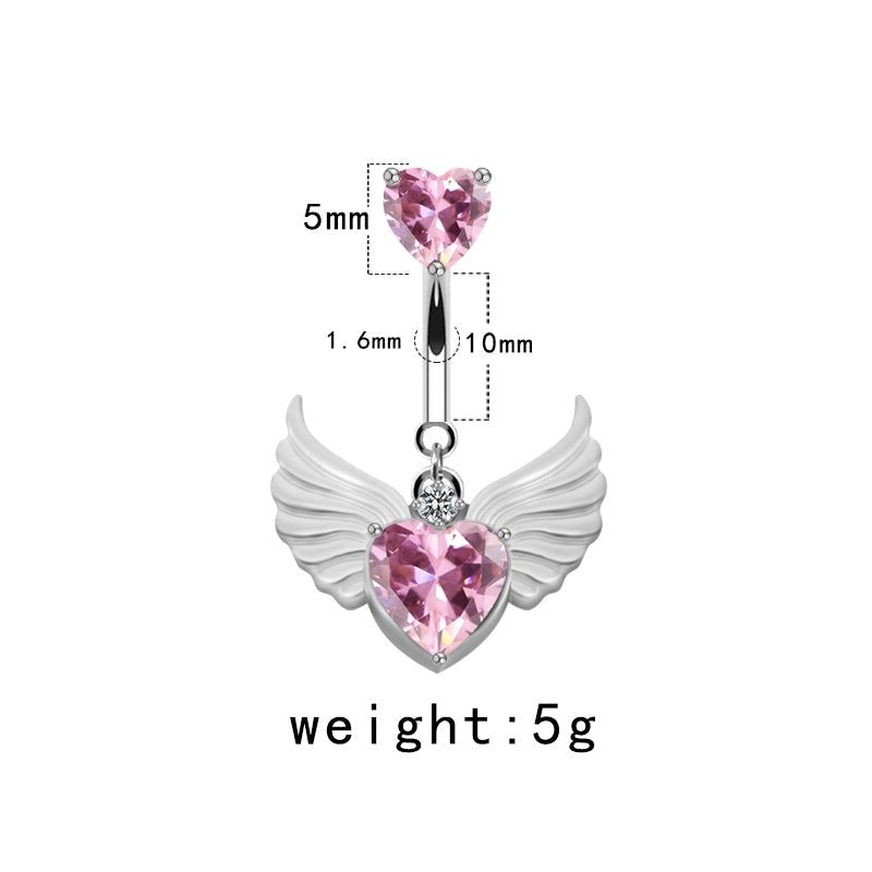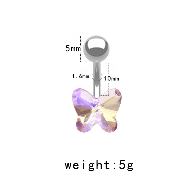 Elegant Butterfly Wings Zircon Rhinestone Belly Ring in White Gold Plated Stainless Steel