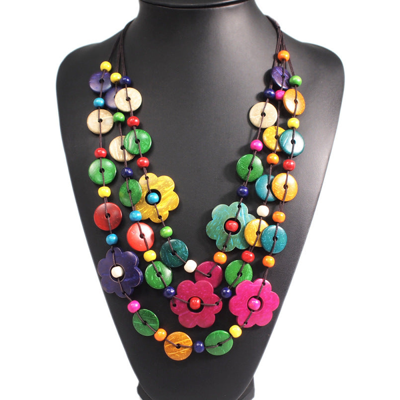 Elegant Bohemian Coconut Shell Flower Pendant Necklace
