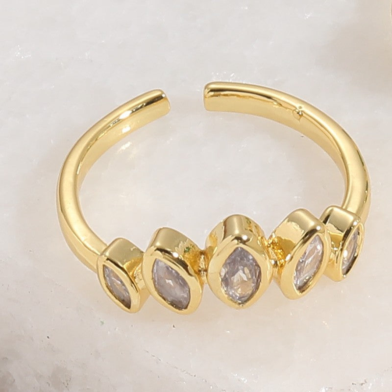 Elegant Geometric Zircon 14K Gold Plated Open Ring