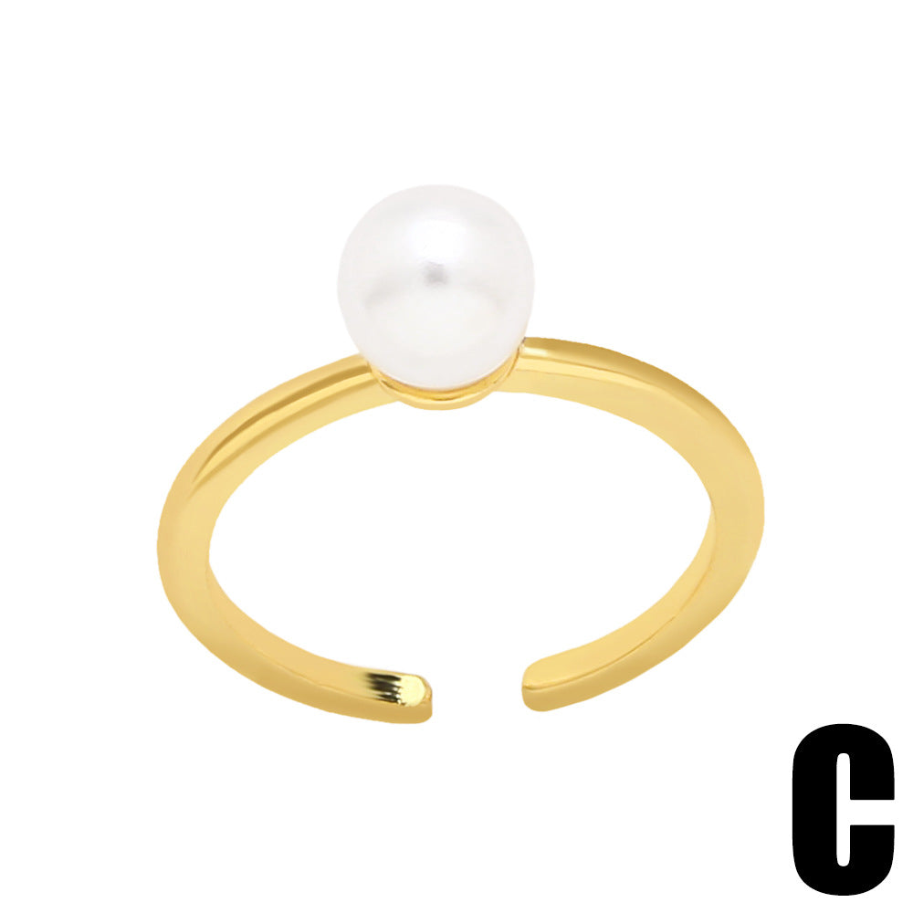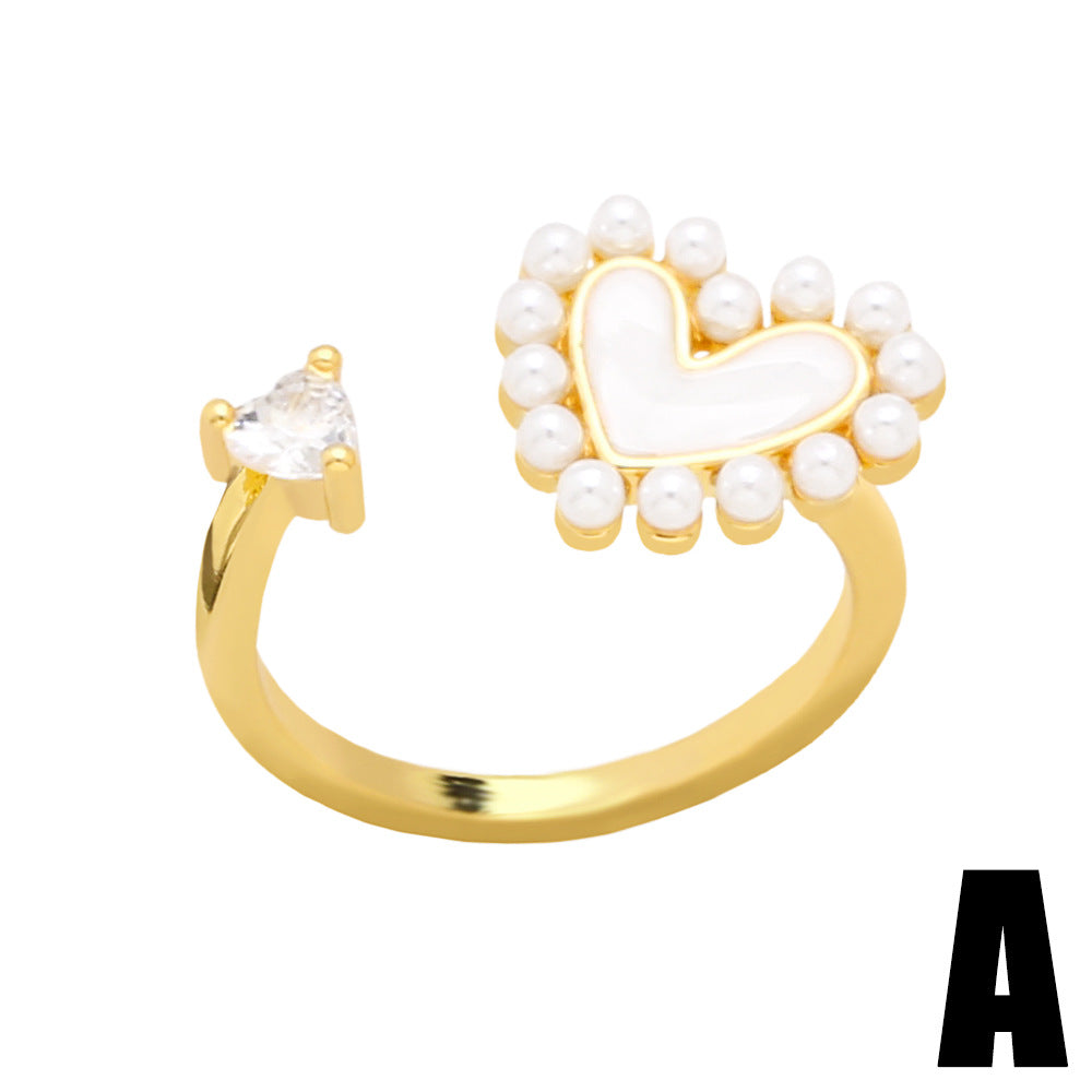 Elegant Geometric Heart Shape Gold Plated Pearl Zircon Open Ring
