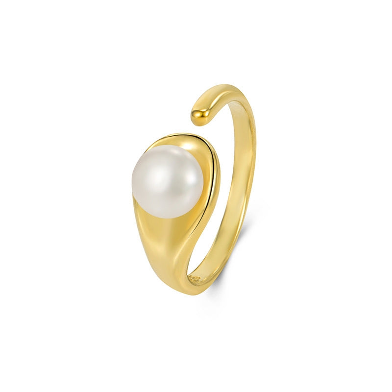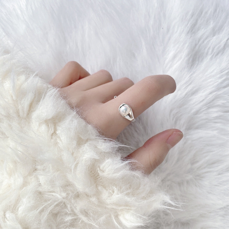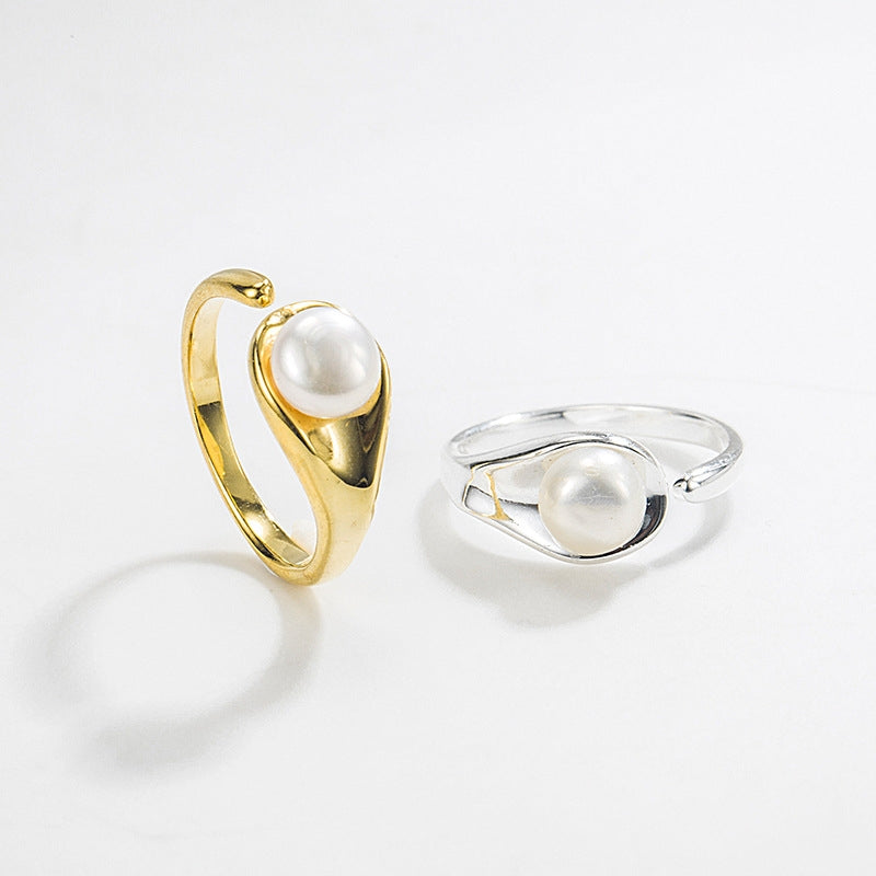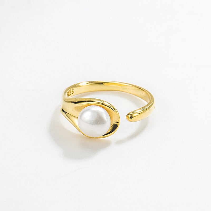 Elegant Geometric S925 Sterling Silver Natural Pearl Open Ring