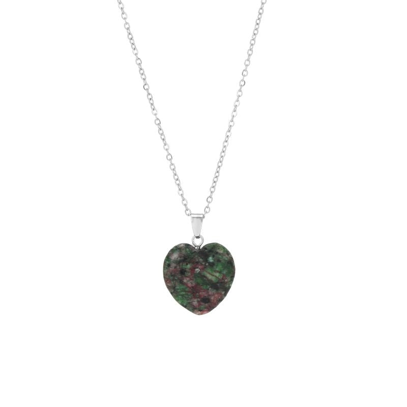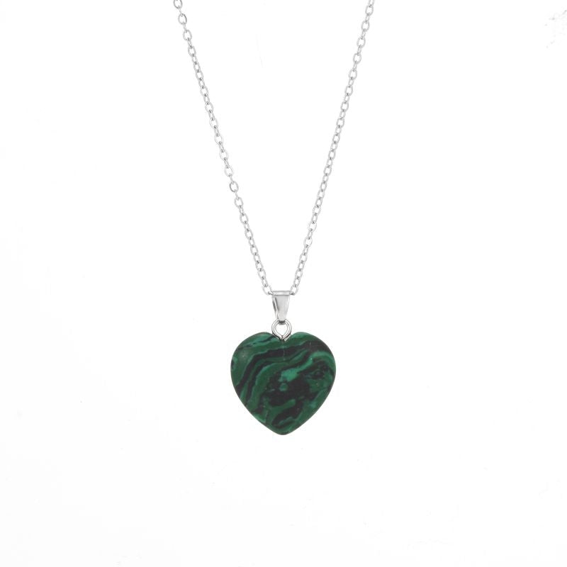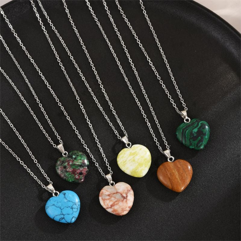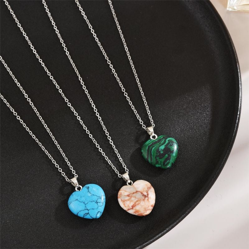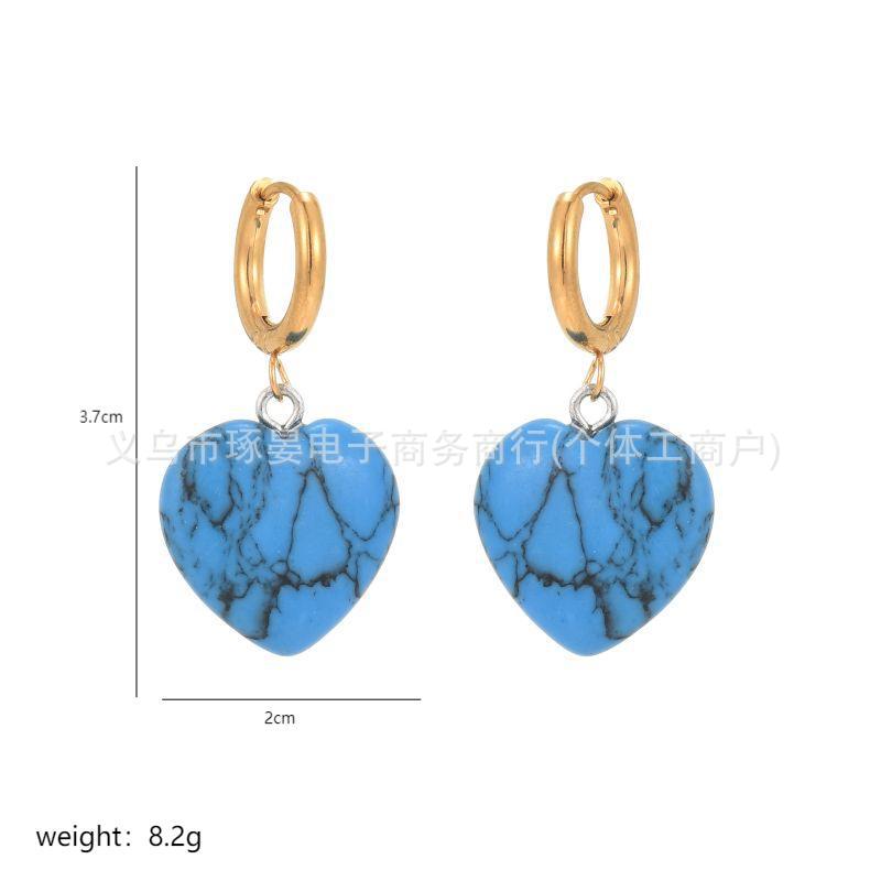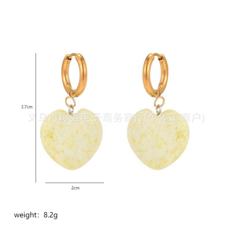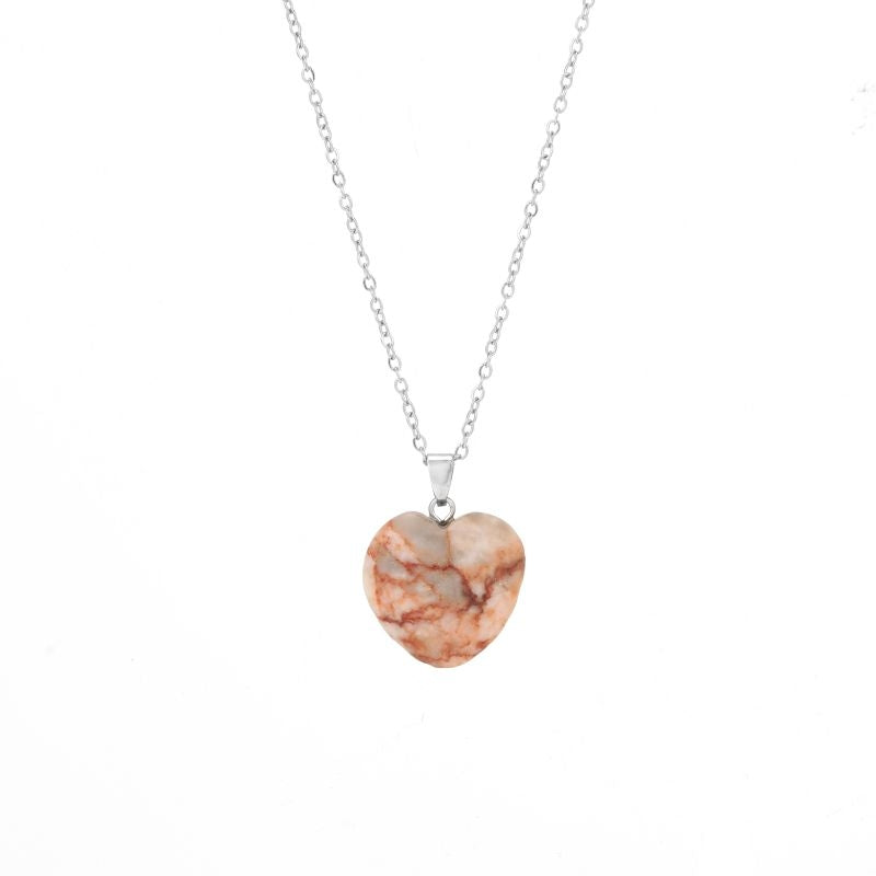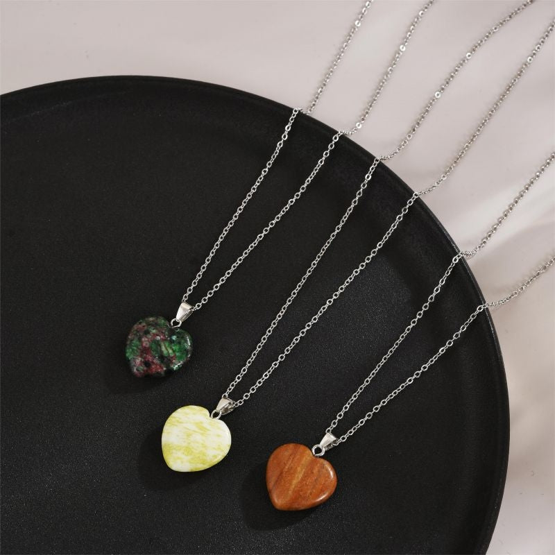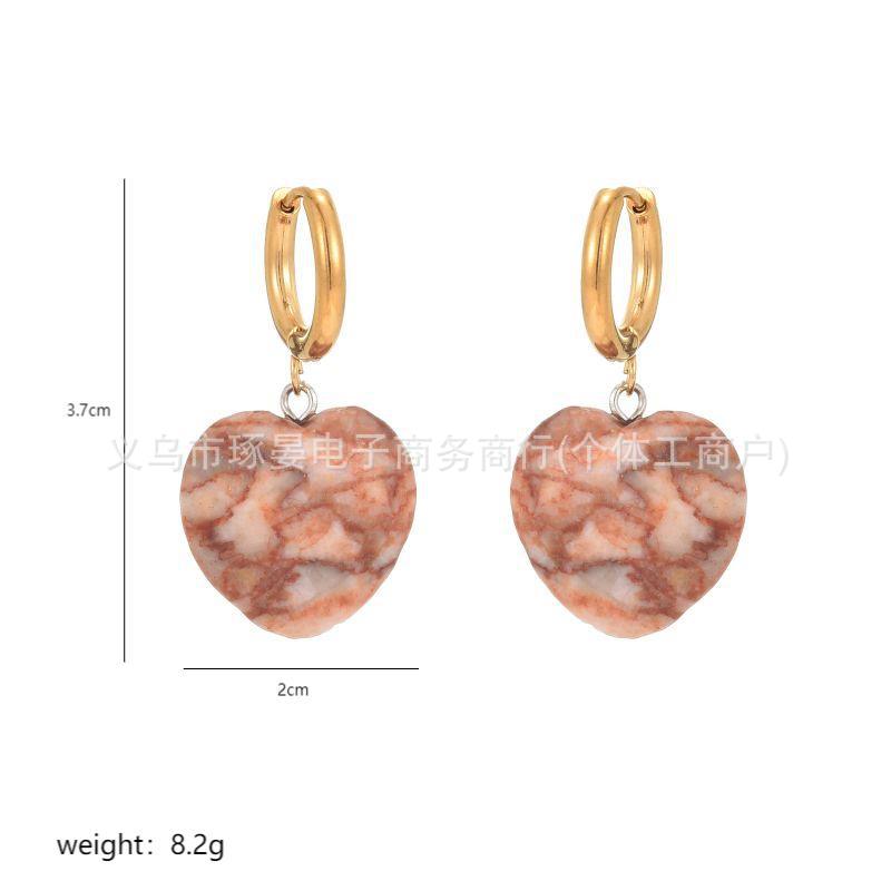Elegant Heart Shape Stainless Steel 18K Gold Plated Natural Stone Jewelry Set - Necklace and Earrings