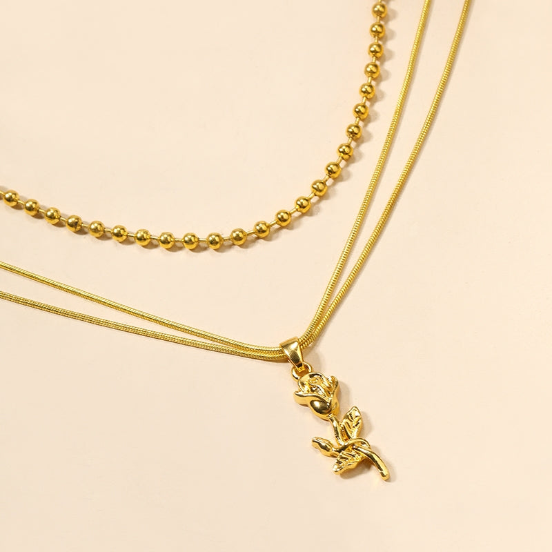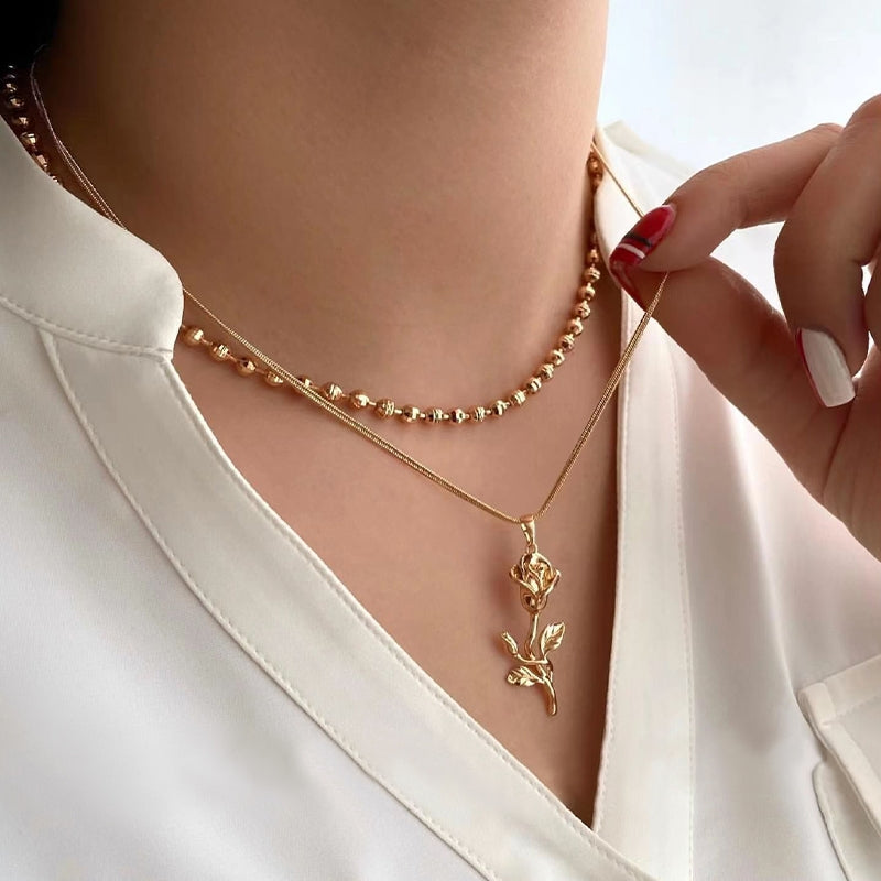 Elegant Rose Pendant Layered Women's Necklace