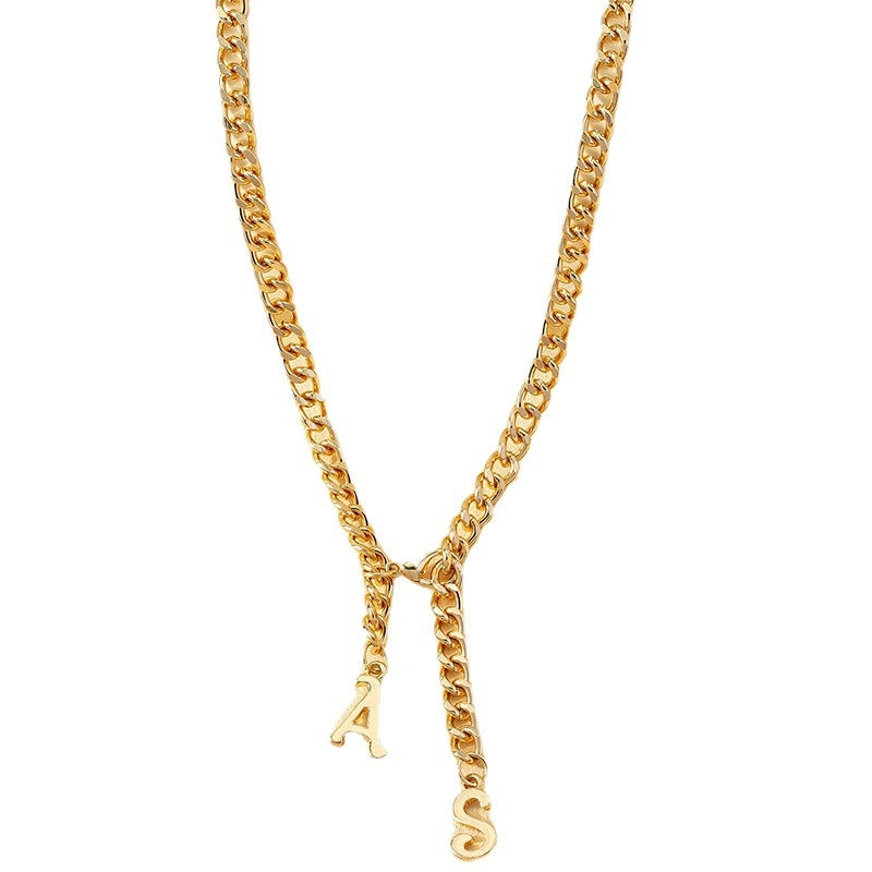 Elegant Letter Alloy Pendant Necklace with Lobster Clasp Cuban Chain