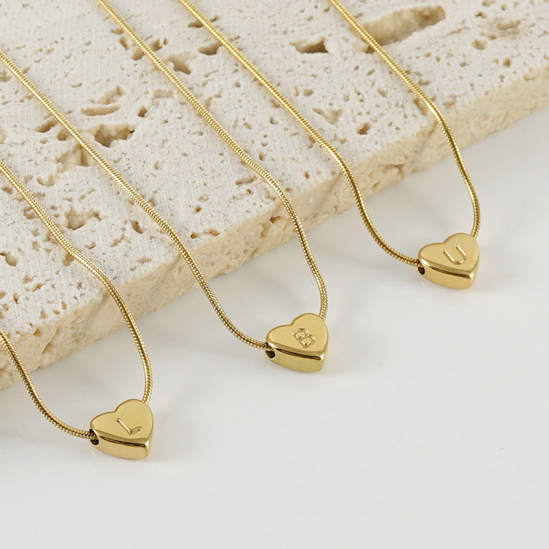 Elegant Heart & Number Stainless Steel Titanium Necklace - Unisex Vintage Snake Chain