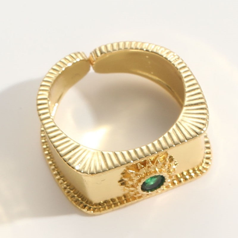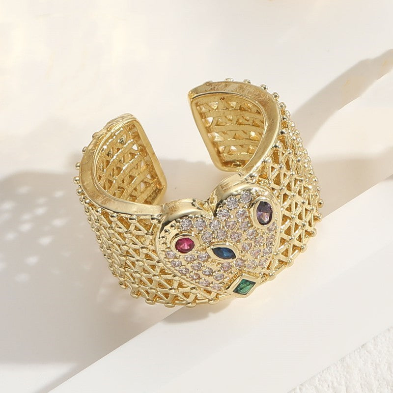 Elegant Geometric Zircon Heart Shape 14K Gold Plated Copper Ring