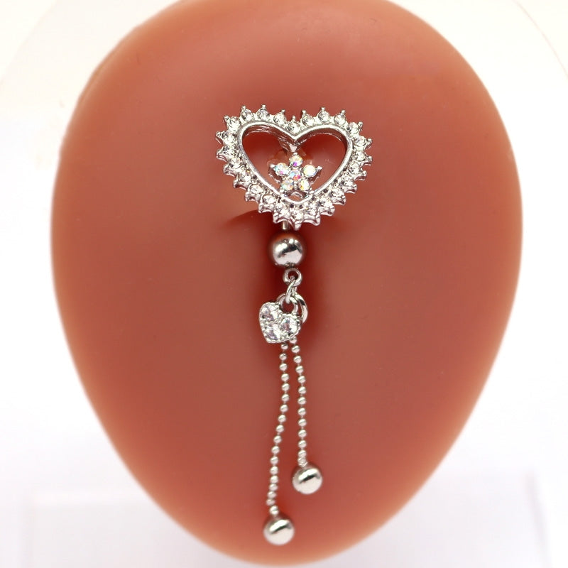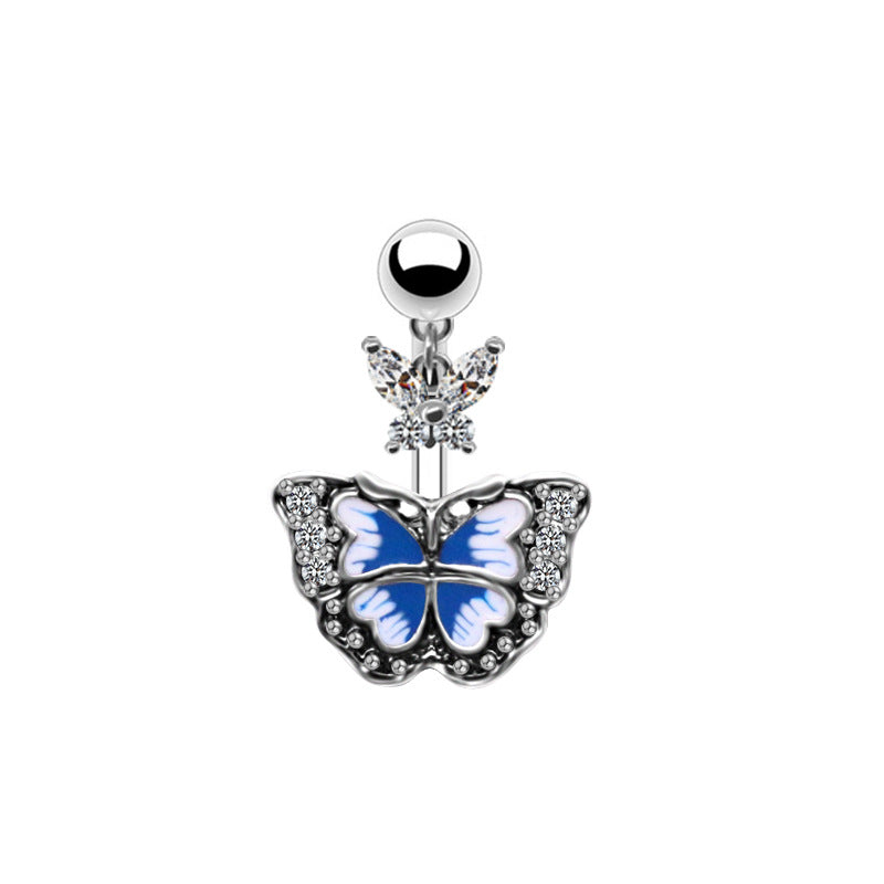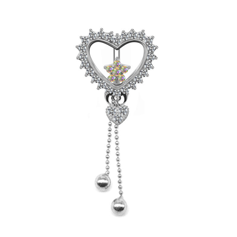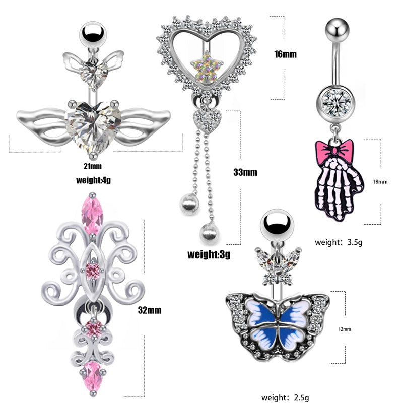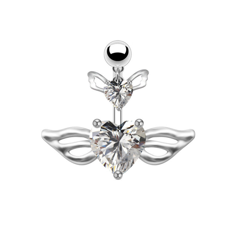 Elegant Heart Shape Butterfly Wings White Gold Plated Zircon Belly Ring