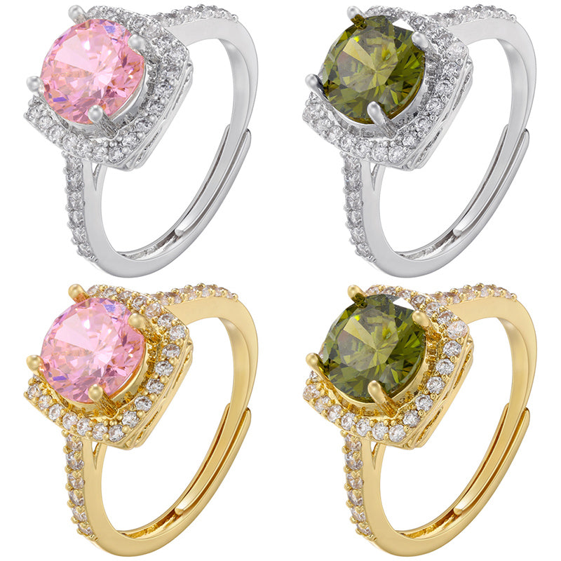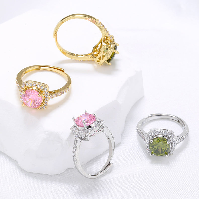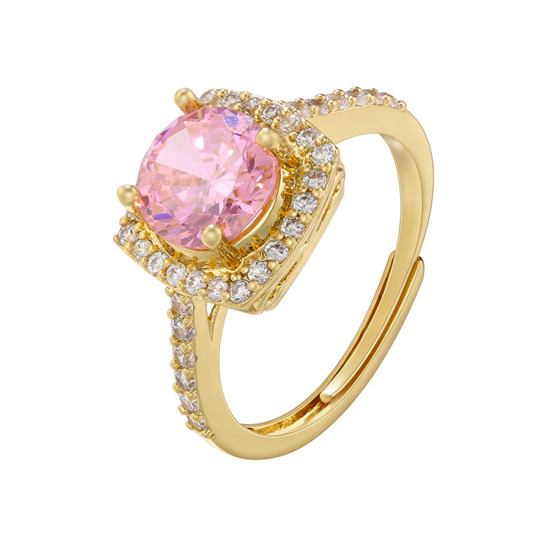 Elegant Luxurious 18K Gold Plated Zircon Adjustable Square Ring