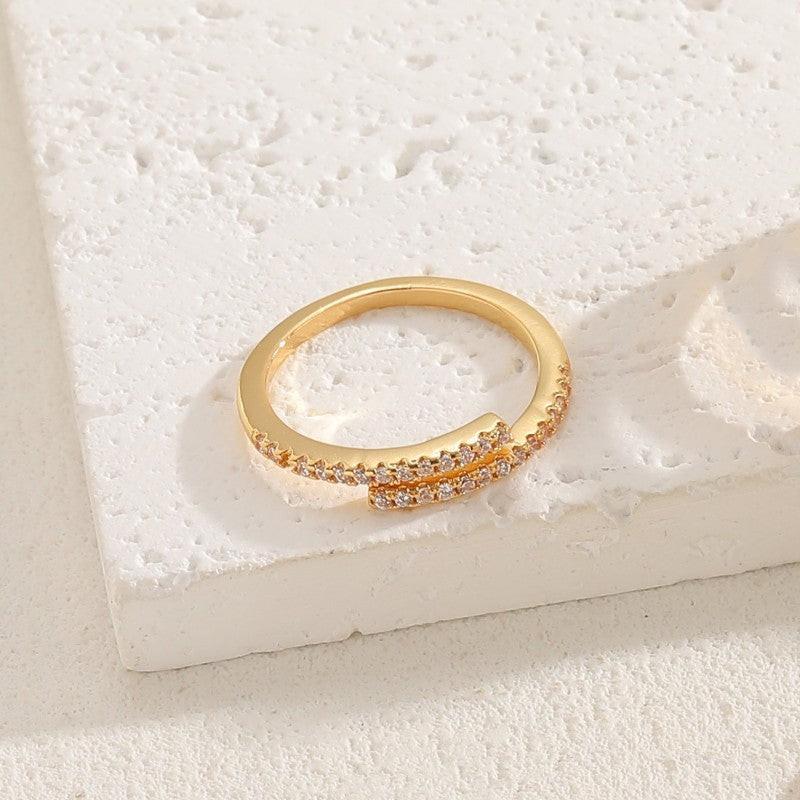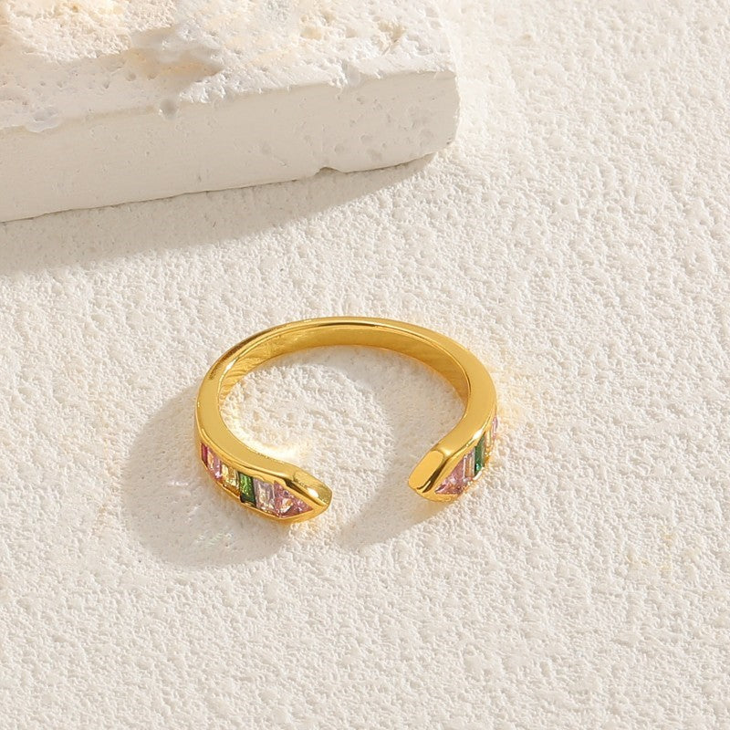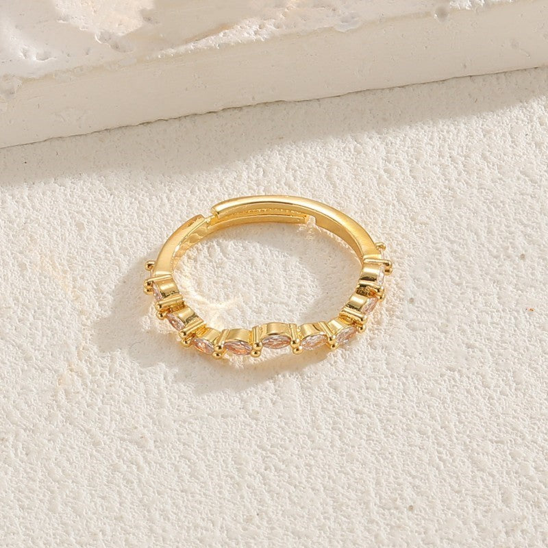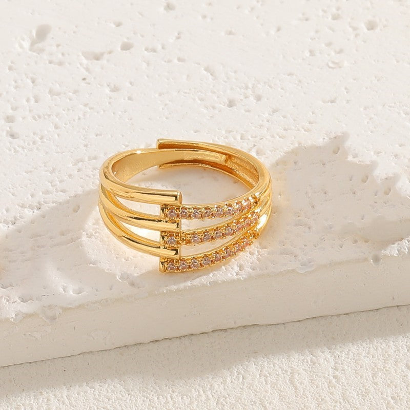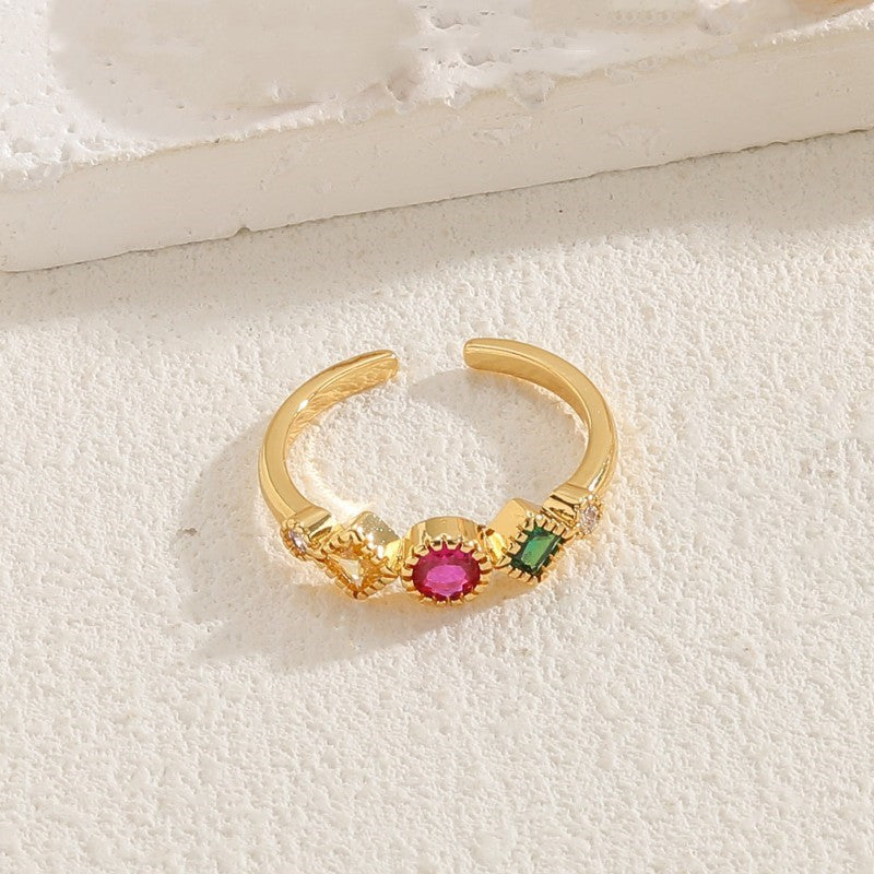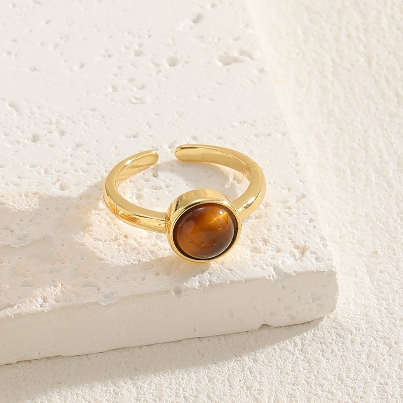 Elegant Geometric Tiger Eye Zircon 14K Gold Plated Copper Ring