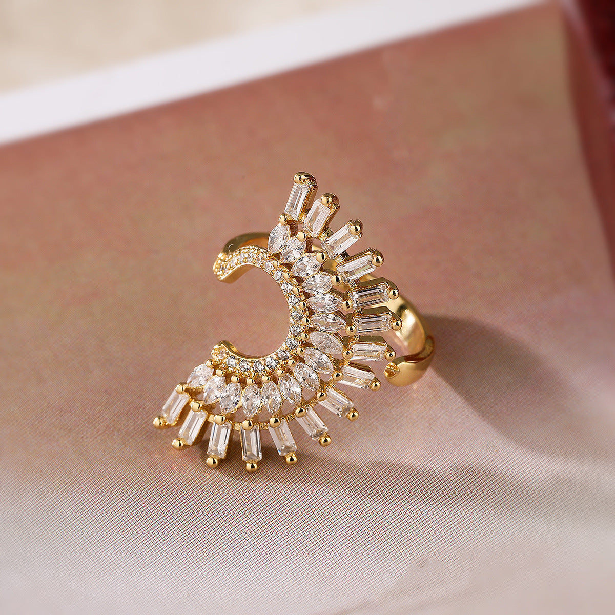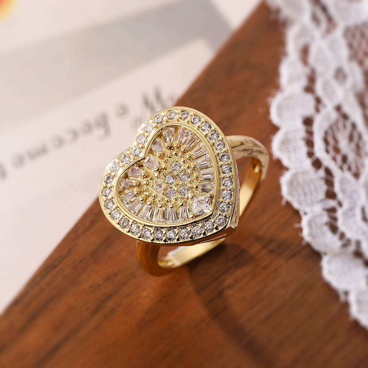 Elegant Geometric Heart Zircon 18K Gold Plated Open Ring