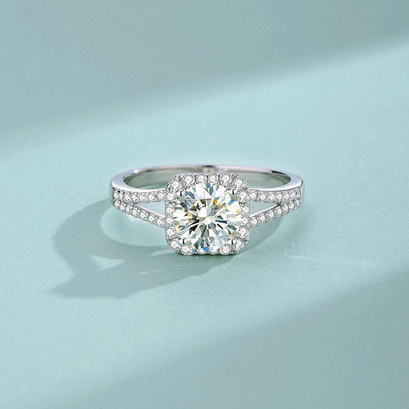 Elegant Geometric Sterling Silver Moissanite Zircon Ring