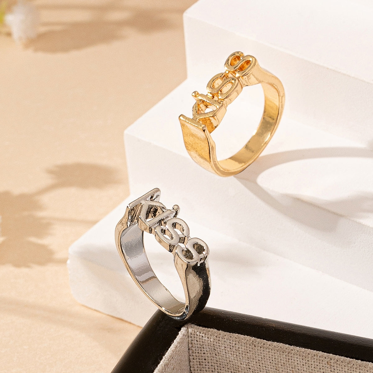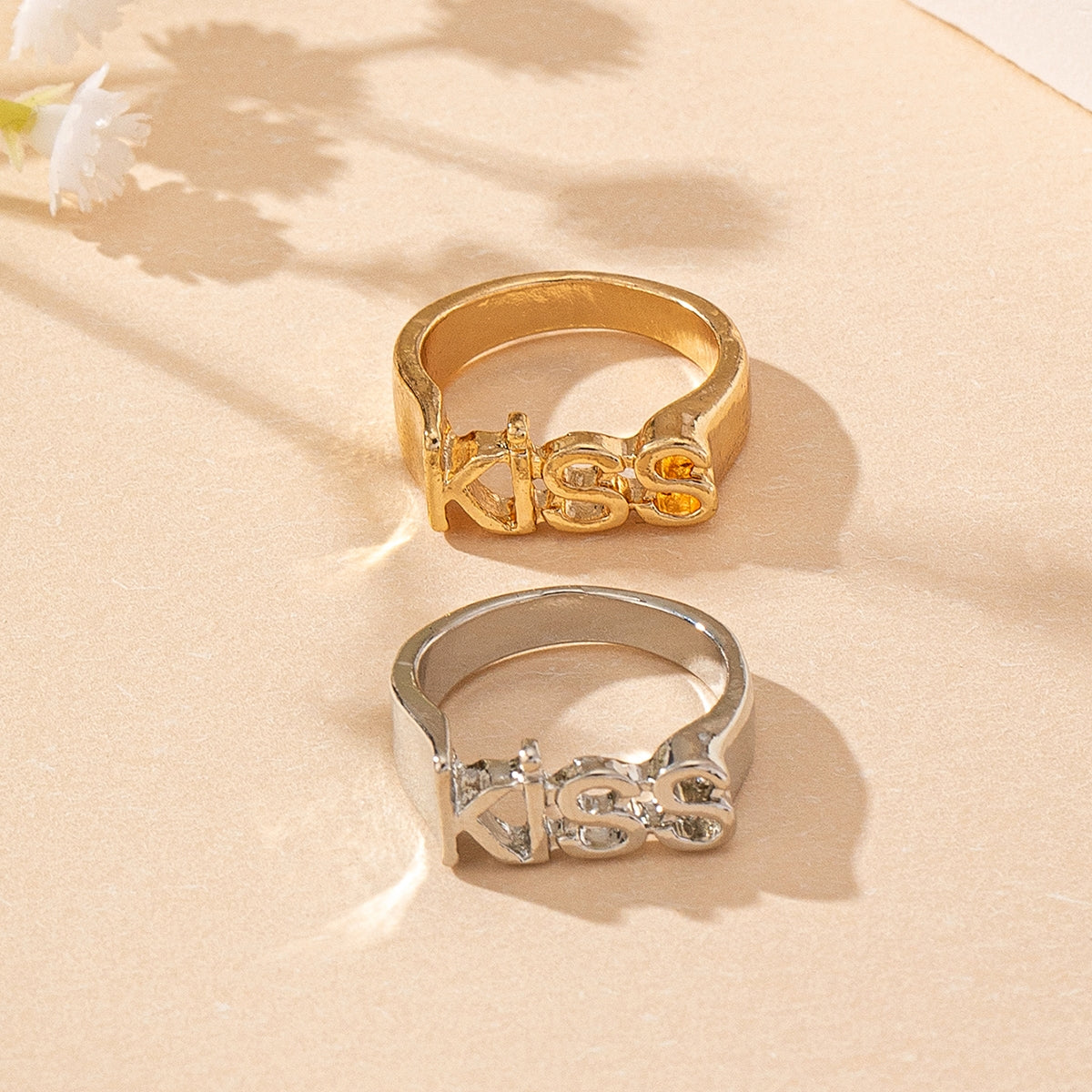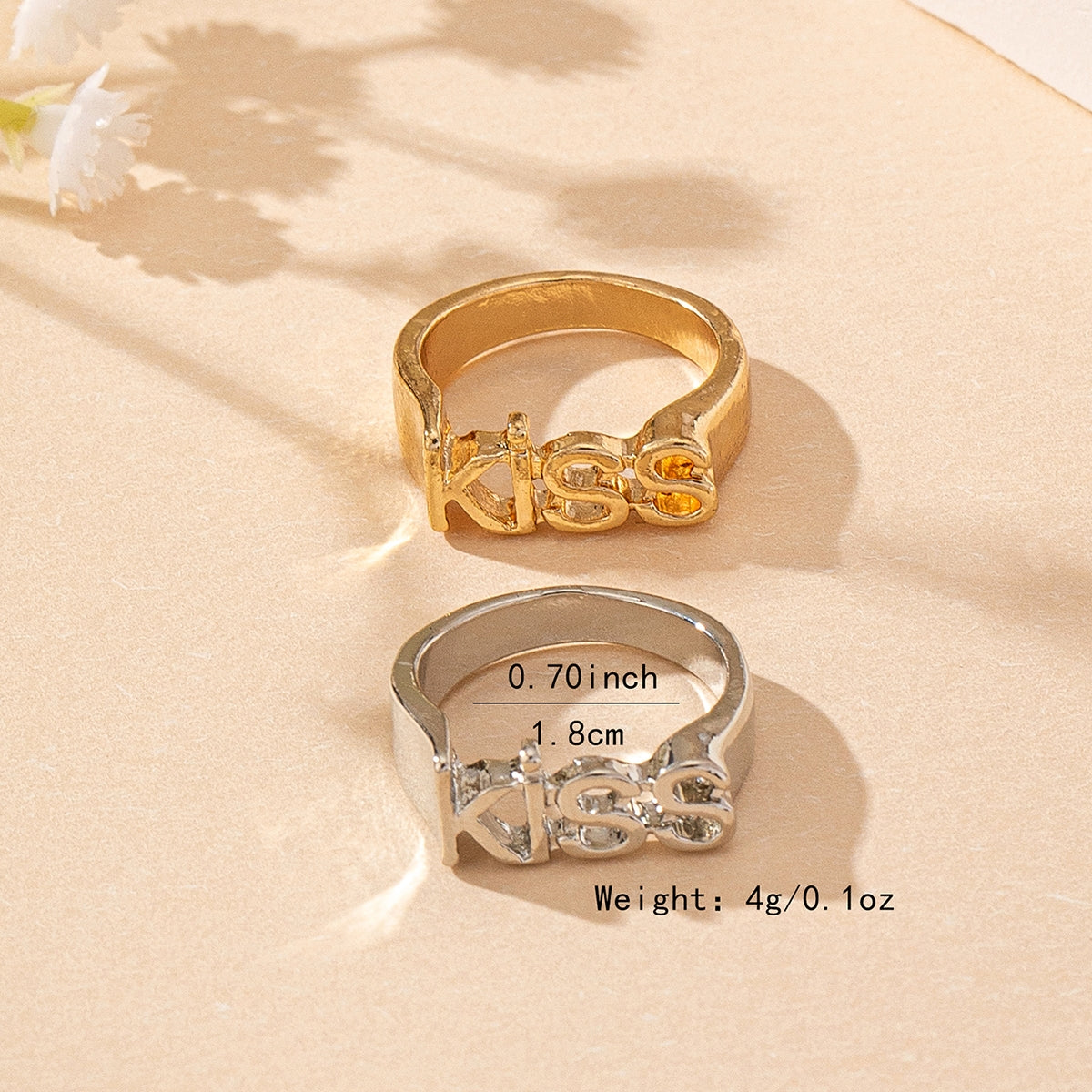 Elegant Kiss Letter Alloy Rings - Fashionable Statement Jewelry 2024