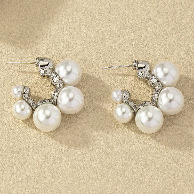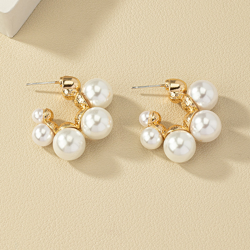 Elegant Geometric Alloy Inlay Pearl Hoop Earrings for Women