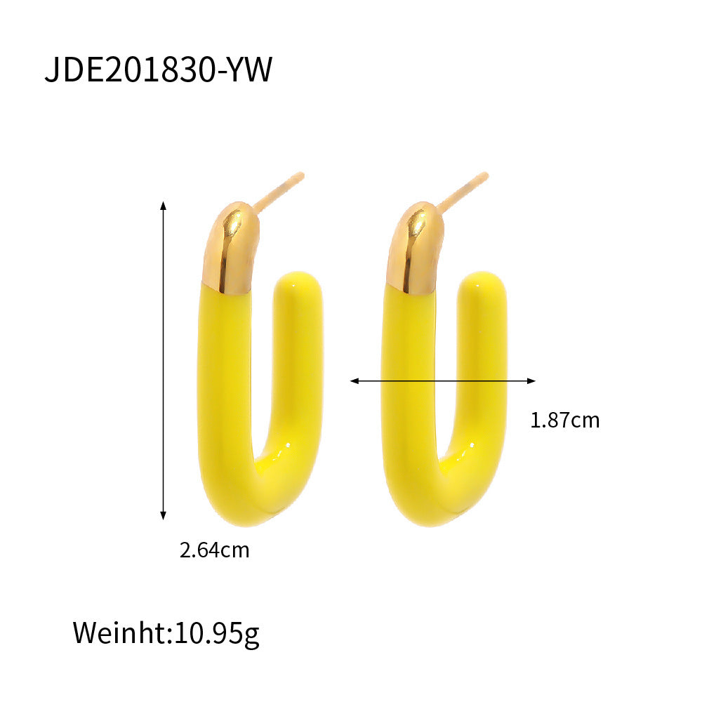 Elegant Geometric Stainless Steel U-Shape Earrings - Colorful Macaron Finish
