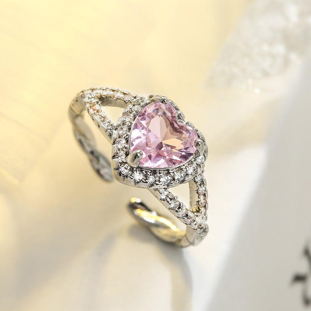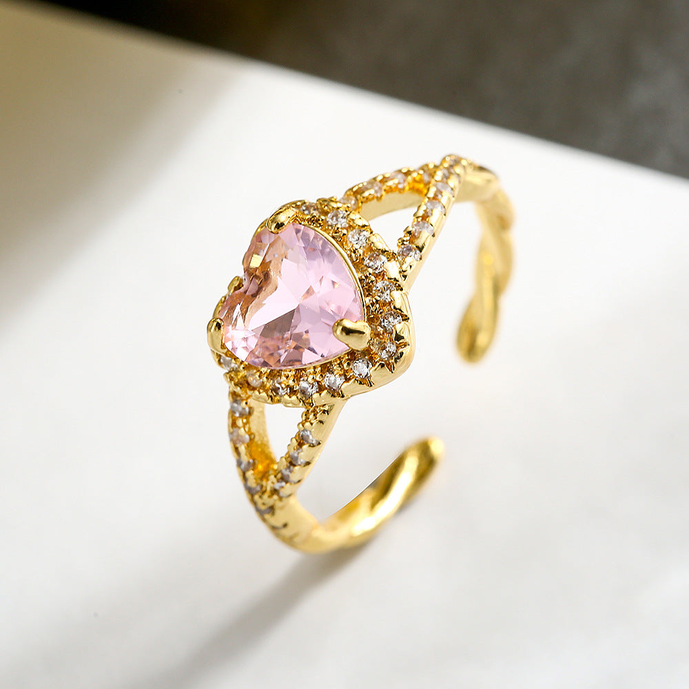 Elegant Heart Shape Zircon 18K Gold Plated Open Ring