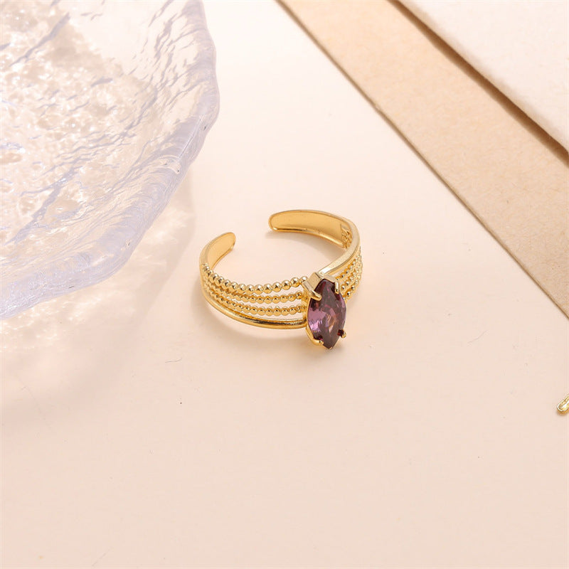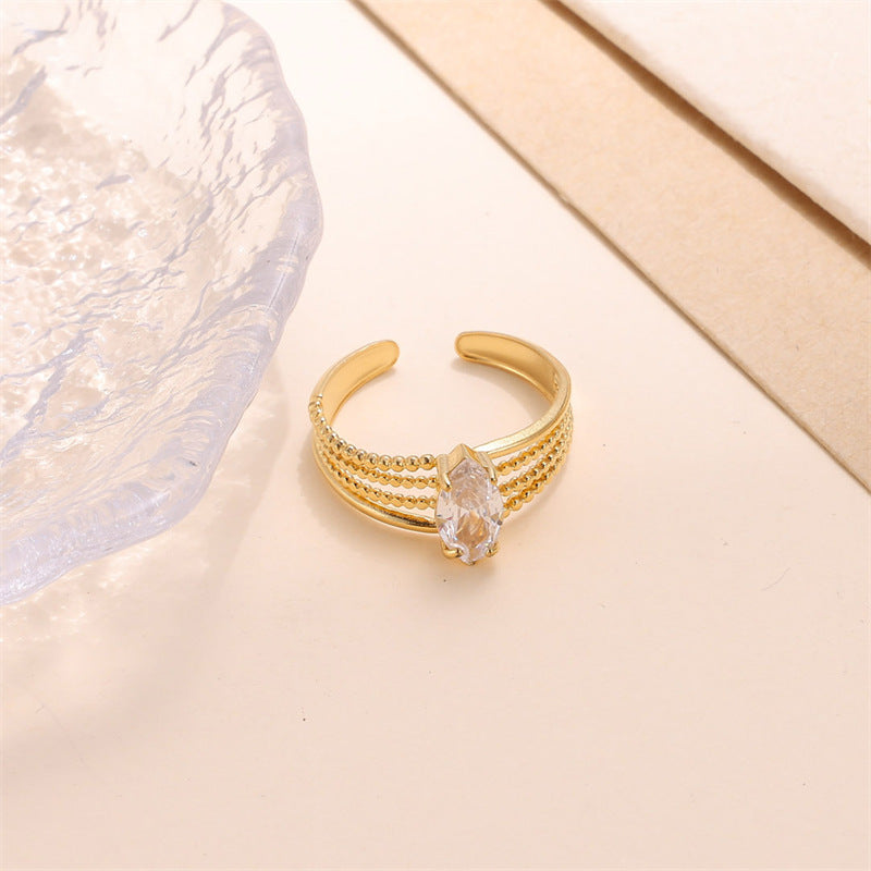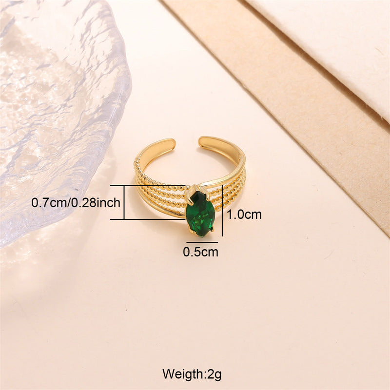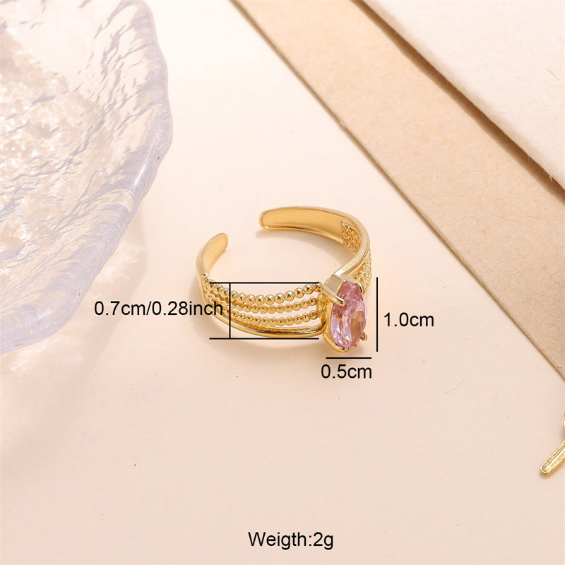 Elegant Oval Zircon Inlay 18K Gold Plated Adjustable Stainless Steel Ring