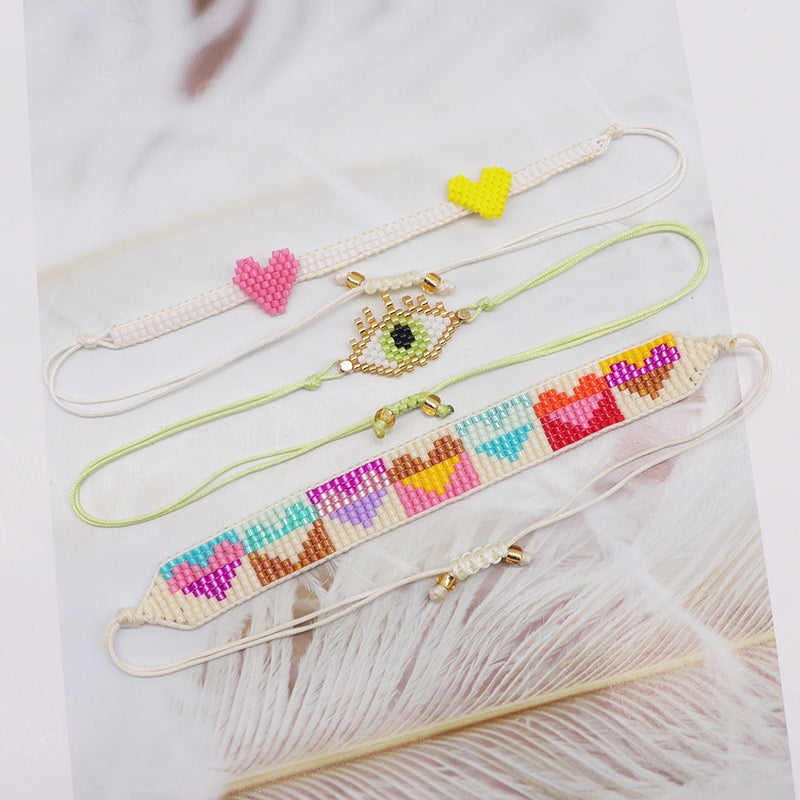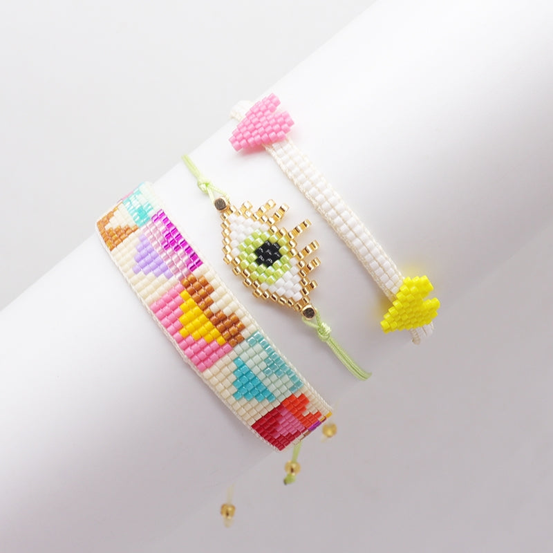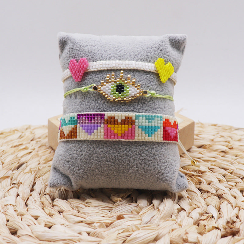 Elegant Vintage Devil's Eye Heart Glass & Colorful Miyuki Beaded Women's Bracelet Set