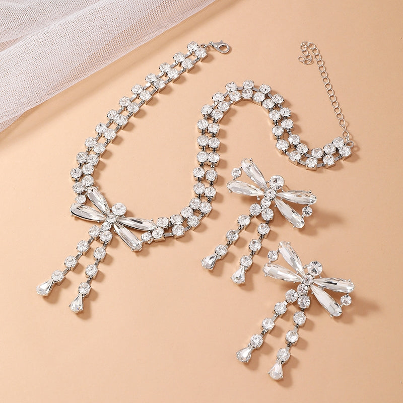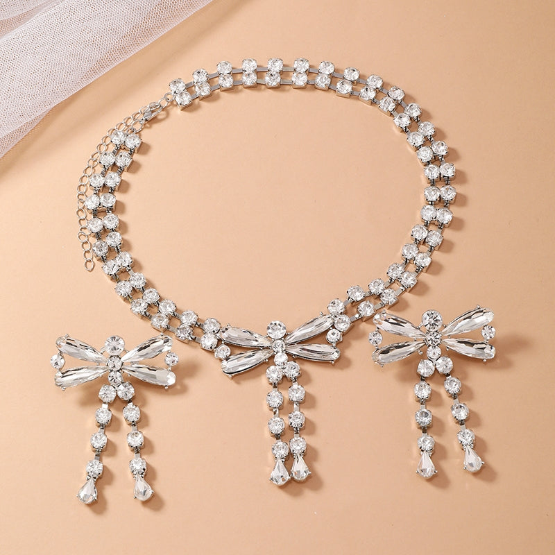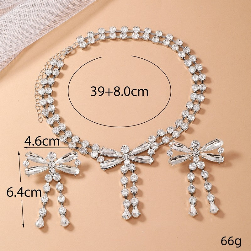 Elegant Bridal Bow Knot Rhinestone Necklace and Earring Set