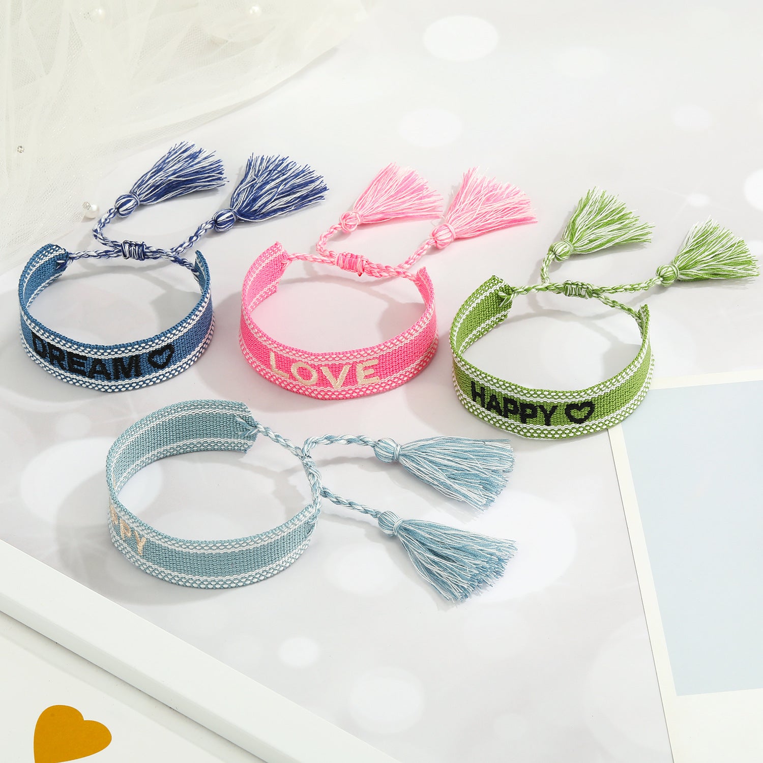 Embroidered Woven Alphabet Tassel Bracelet - Personalized Couple Jewelry
