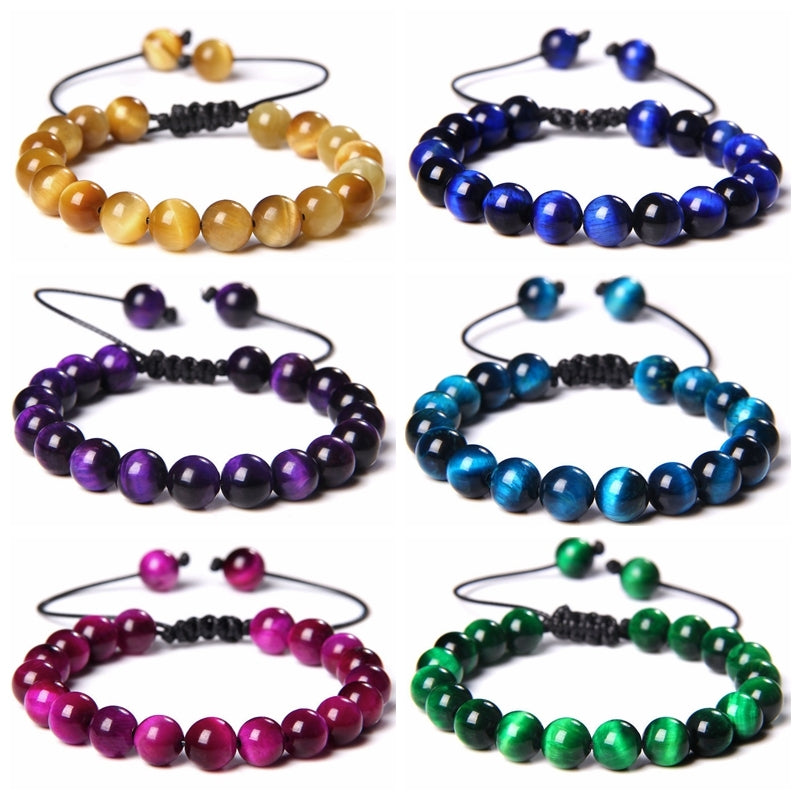 Ethnic Geometric Natural Stone Tiger Eye Beaded Adjustable Bracelet