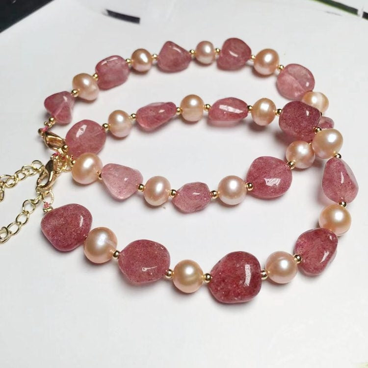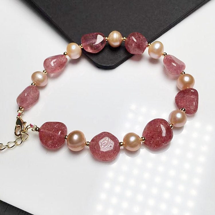 Ethnic Irregular Crystal and Freshwater Pearl Bracelet with 14k Gold Plated Accents