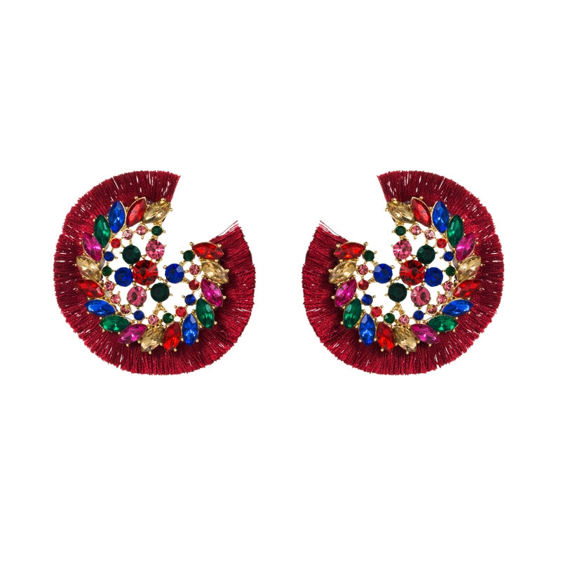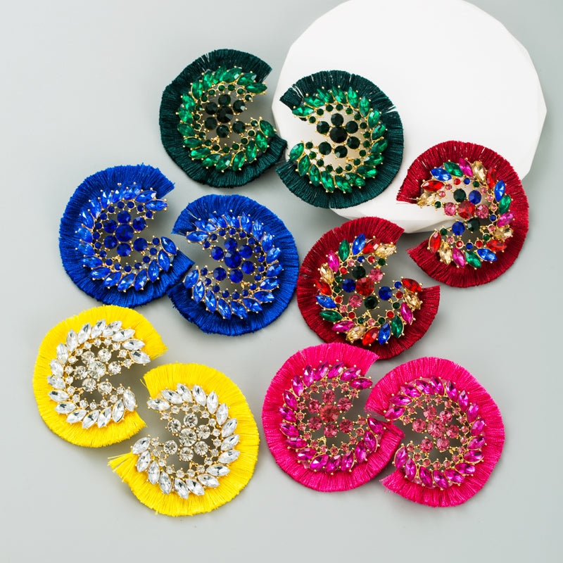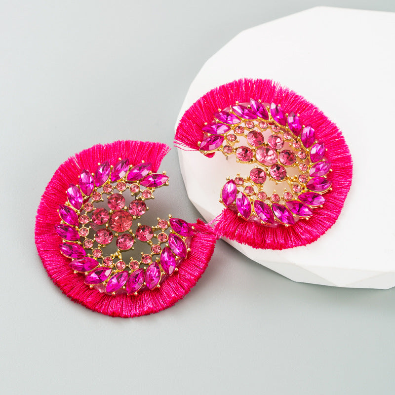 Bohemian Alloy Tassel Rhinestone Circle Earrings for Women