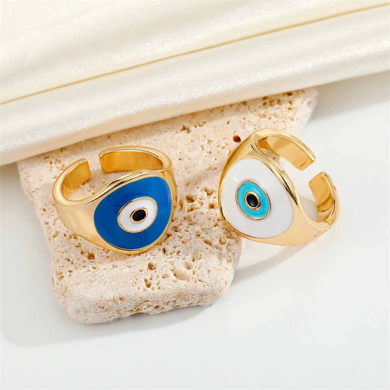 Vintage Retro Evil Eye Ring and Bracelet Set - Turkish Inspired Jewelry