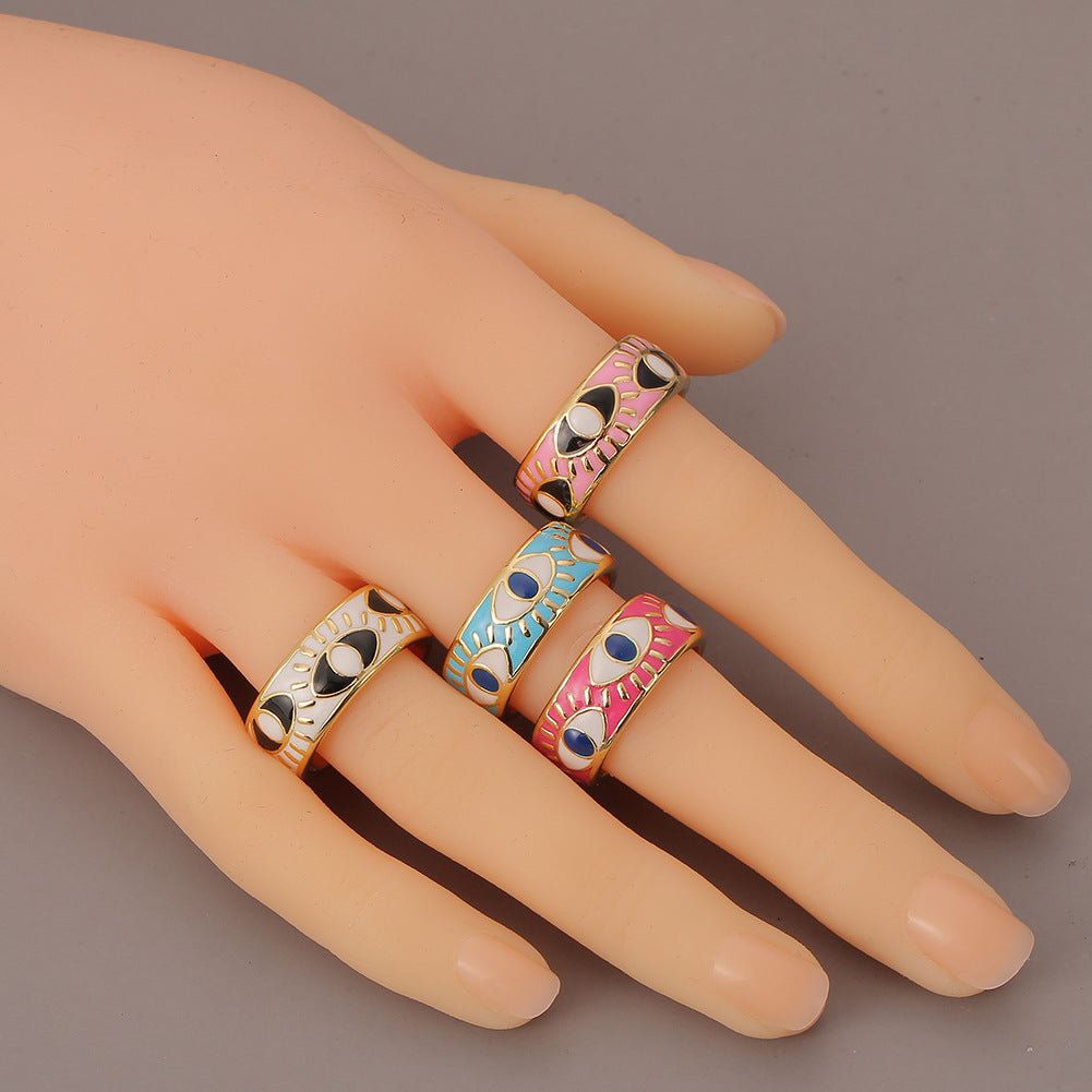 European American Fashion Colorful Evil Eye Copper Statement Ring