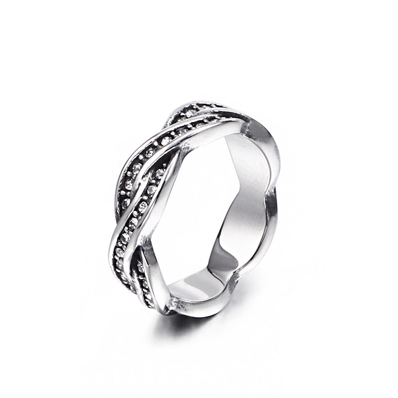 European American Stainless Steel Bead Chain Micro Setting Couple's Ring