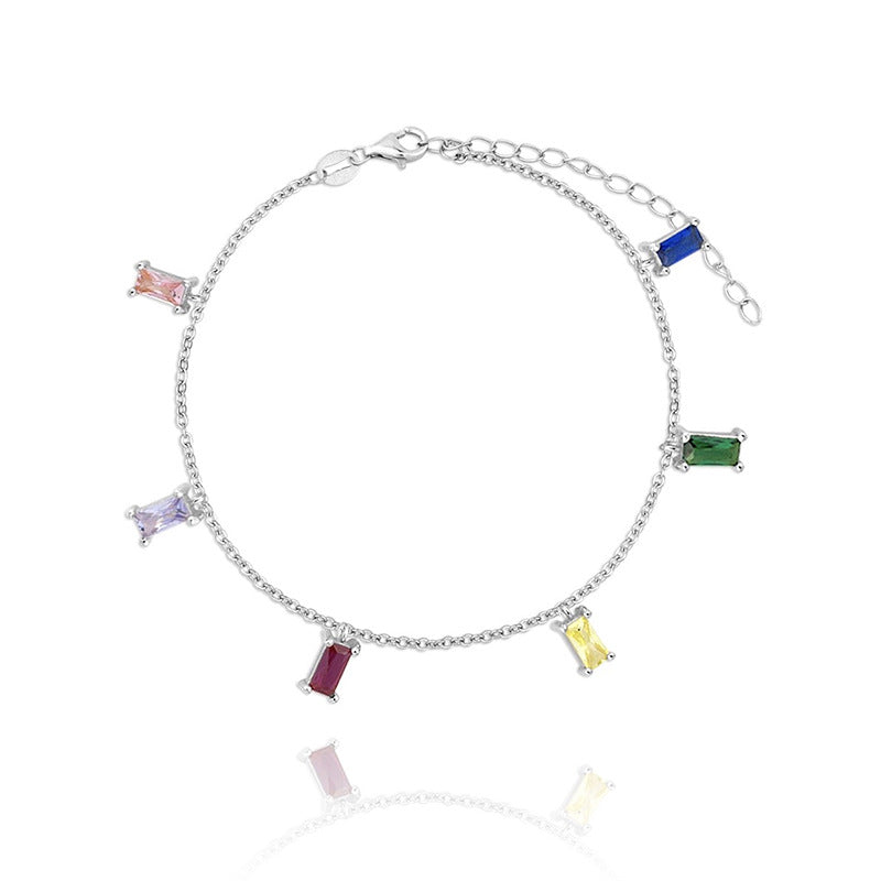 S925 Sterling Silver Colorful Zircon Bracelet for Women - Fashionable INS Style Jewelry