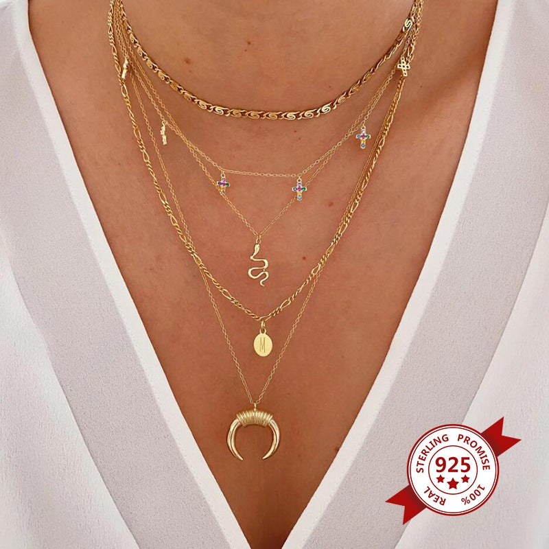 European American S925 Silver Snake Necklace - Vintage Style Choker