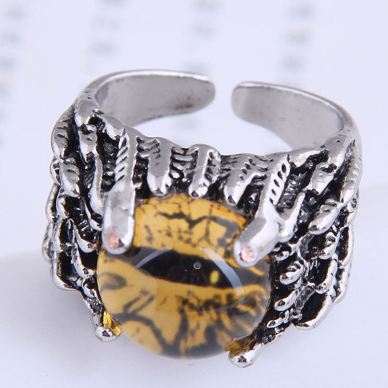 Exaggerated Evil Eye Claw Open Ring - Minimalist Metal Design