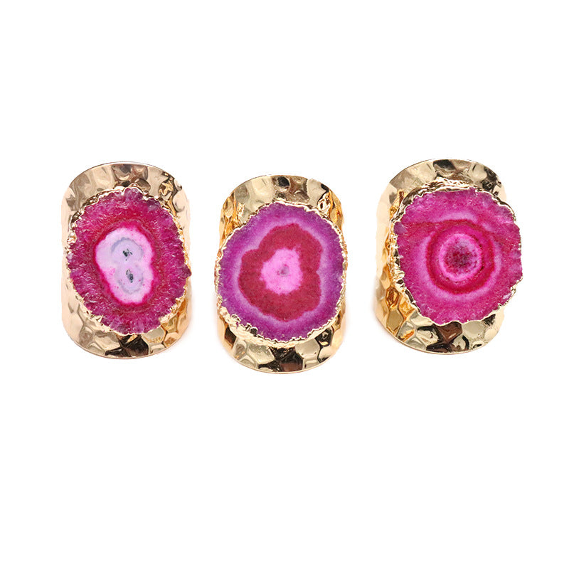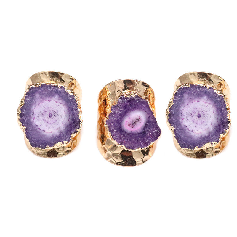 Exaggerated Irregular Agate Gemstone Gold Plated Open Ring