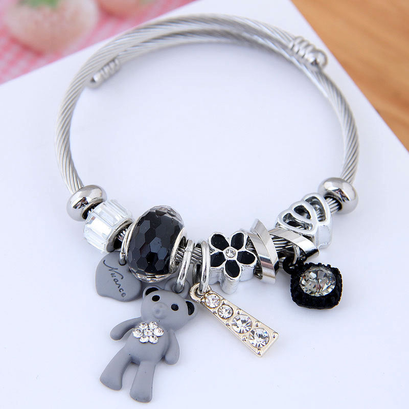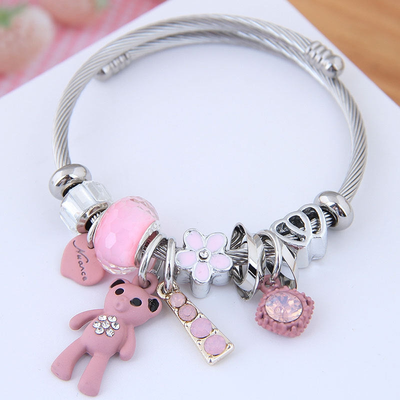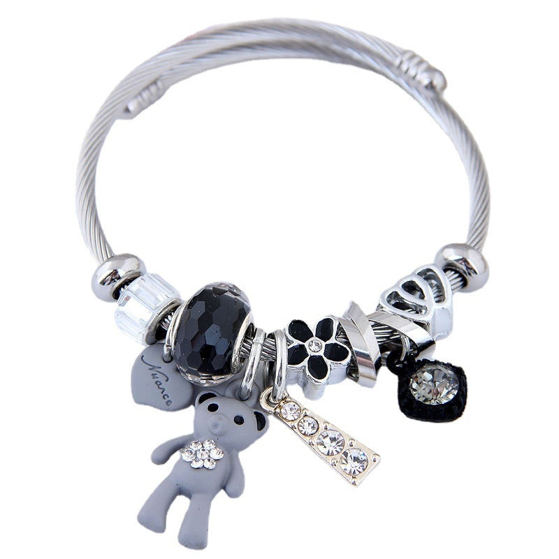 European American DIY Love Bear Pendant Beaded Adjustable Bracelet for Women
