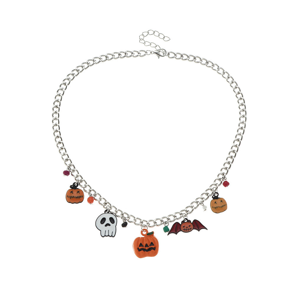 Halloween Pumpkin Bat Pendant Necklace - Fashion Alloy Women's Jewelry