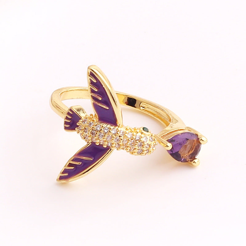 Fashion Animal Heart Shape Gold Plated Zircon Adjustable Ring