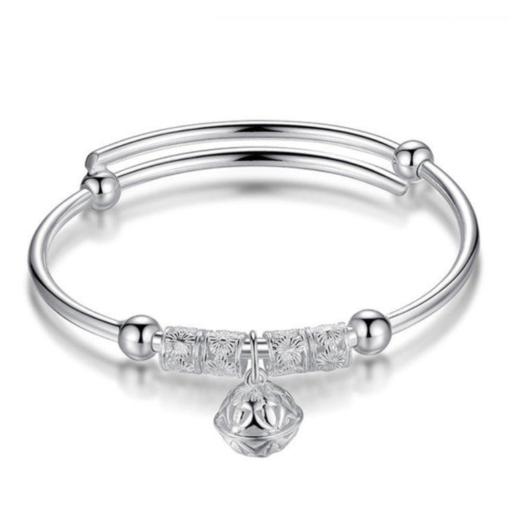 Silver Plated Bell Charm Women's Bangle Bracelet